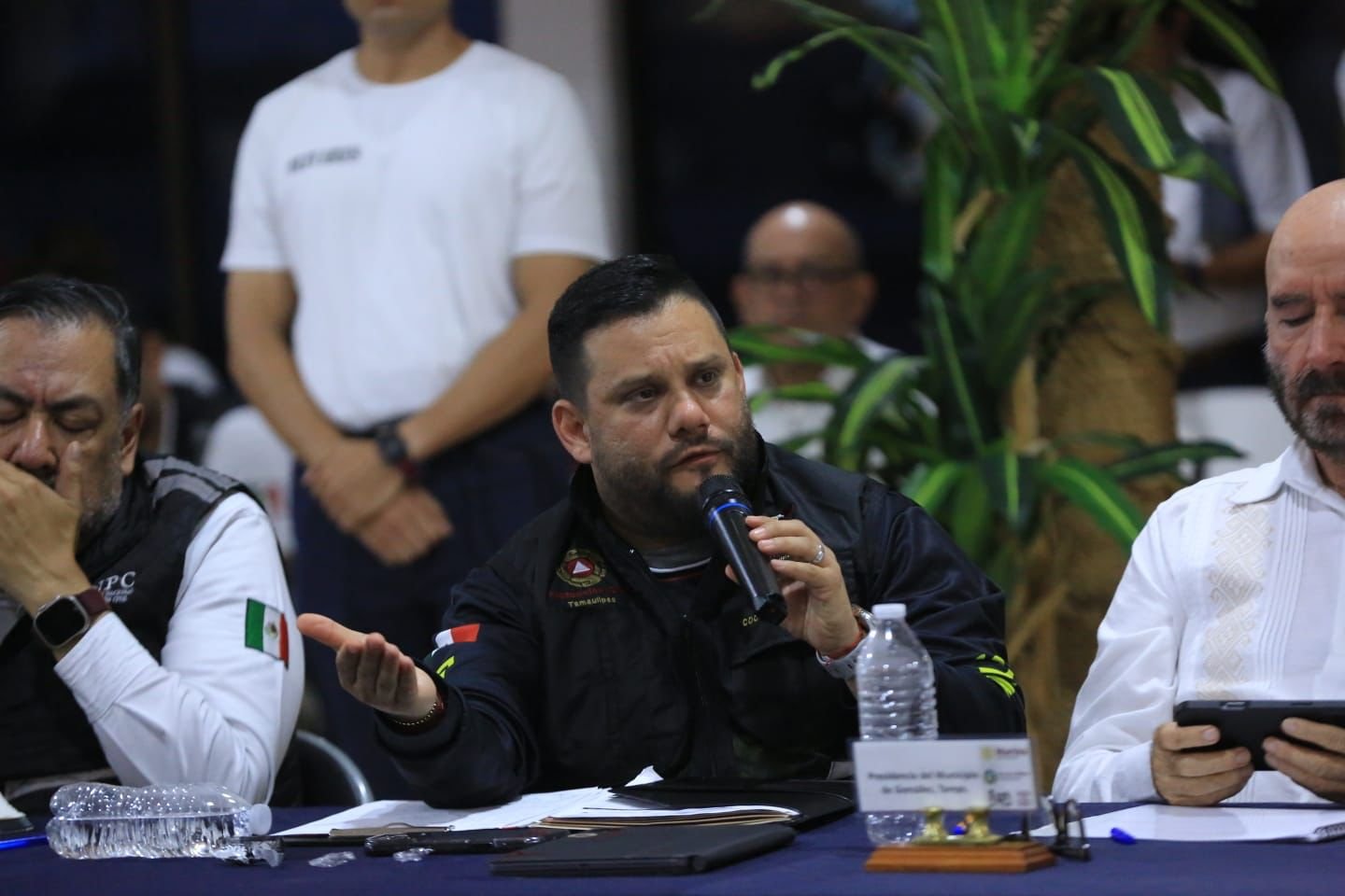 También participaron en esta mesa de coordinación: el comandante de la Primera Región Naval, Carlos Eduardo L’Eglise Escamilla; el comandante de la Primera Zona Naval, Miguel Rivas Hernández; y el comandante de la 48 Zona Militar, Enrique García Jaramillo; así como el secretario general de Gobierno, Héctor Villegas González; el secretario de Recursos Hidráulicos, Raúl Quiroga Álvarez, el coordinador estatal de Protección Civil, Luis Gerardo González de la Fuente, además de funcionarios y representantes de dependencias las federales participantes en las operaciones.