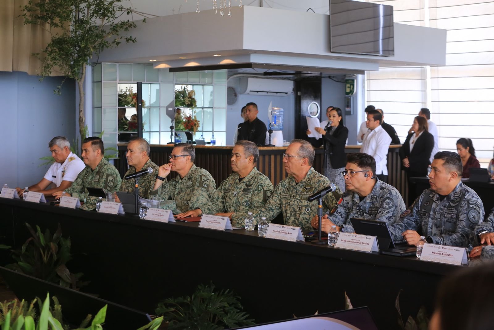 En la reunión también participó el comisionado nacional de Migración, Sergio Salomón Céspedes; los secretarios generales de Gobierno de los tres estados, así como los secretarios de Seguridad y los fiscales de Justicia, contándose además con la presencia de mandos militares de la Defensa Nacional, Guardia Nacional y Marina.
