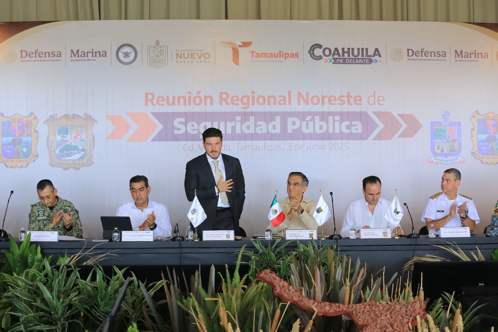 El gobernador Américo Villarreal, frente a sus homólogos, destacó que, como un frente unido, desde el noreste mexicano, participan con voluntad y trabajo junto a la presidenta Claudia Sheinbaum Pardo, sumando sus capacidades en apoyo al cumplimiento de sus cien compromisos y en un lugar destacado en la operatividad y los objetivos del Plan México.