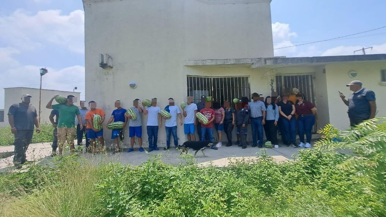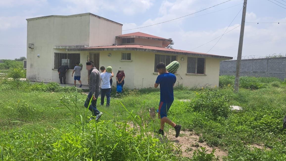 Güémez, Tamaulipas.- Tras varias semanas de cuidados y dedicación, sandías sembradas en huertos comunitarios del Centro de Ejecución de Medidas para Adolescentes del municipio de Güémez fueron cosechadas por menores de edad en conflicto con la Ley Penal, quienes se encargaron de germinar y plantar las semillas como parte de las actividades de reinserción social que se llevan a cabo.