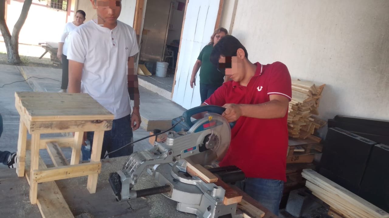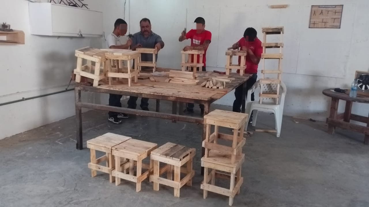 Reynosa, Tamaulipas.- Como una forma de emplear los conocimientos adquiridos en el Taller de Carpintería impartido en el Centro Regional de Ejecución de Medidas para Adolescentes en el municipio de Reynosa, y a la vez, fomentar el humanismo como factor para prevenir la reincidencia delictiva, menores de edad en externamiento elaboraron y donaron 80 sillas de madera a la Casa del Migrante ‘’Senda de Vida’’.