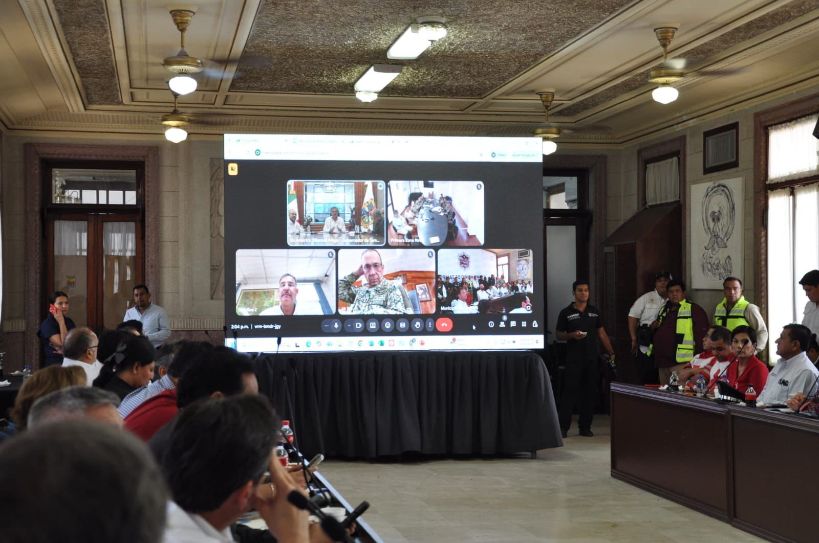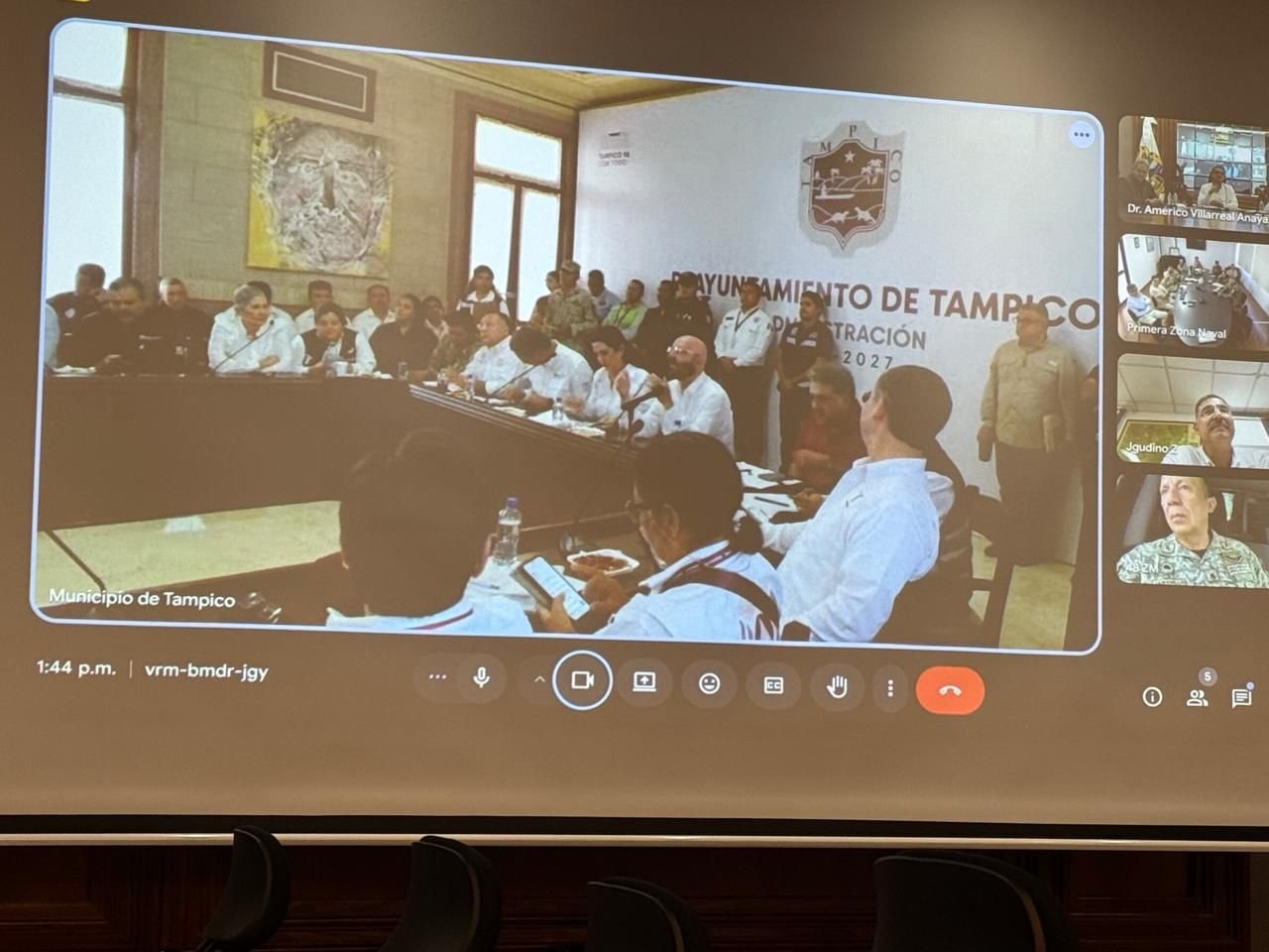 En la reunión tomaron parte, el secretario general de Gobierno, Héctor Joel Villegas González; el secretario de Recursos Hidráulicos, Raúl Quiroga Álvarez y el coordinador estatal de Protección Civil, Luis Gerardo González de la Fuente, así como la presidenta municipal de Tampico, Mónica Zacil Villarreal Anaya; el alcalde de Madero, Erasmo González Robledo y el alcalde de Altamira, Armando Martínez. También estuvieron presentes autoridades militares y navales.