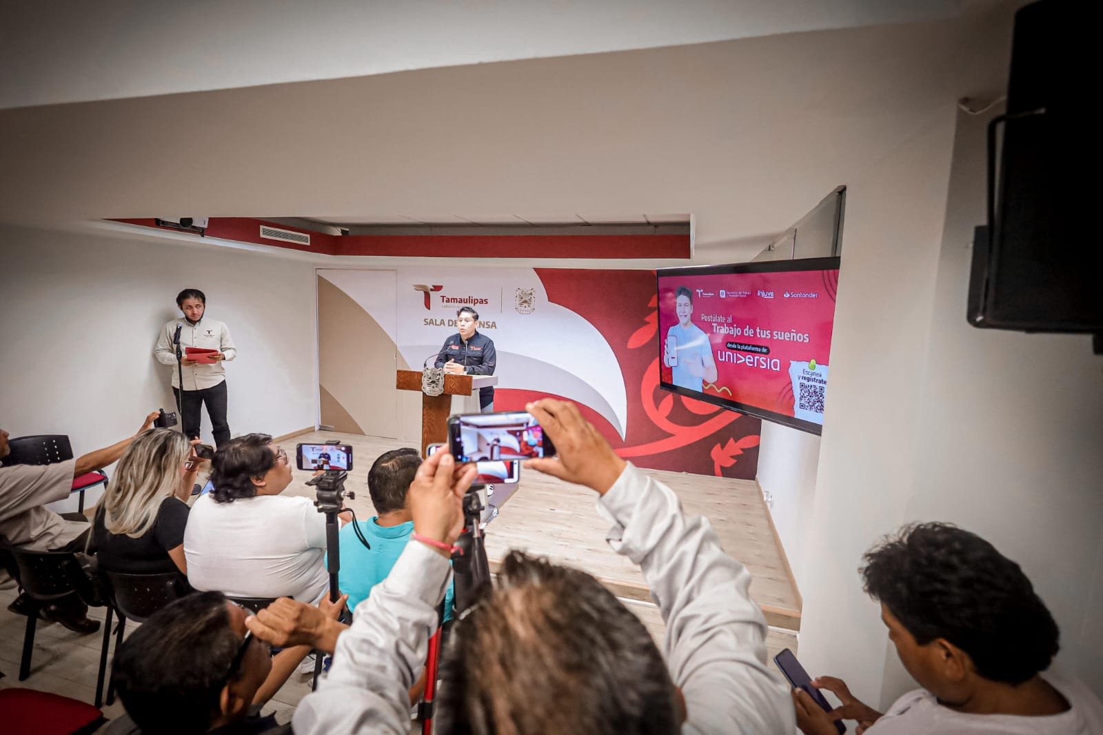 Por un lado, la bolsa de empleo del Instituto de la Juventud de Tamaulipas, ya que “hemos diseñado una plataforma digital de la mano de Banco Santander donde los jóvenes podrán acceder a empleos dentro de una red nacional e internacional, ahí mismo podrán crear su currículum vitae incluso con la ayuda de la inteligencia artificial”, comentó.