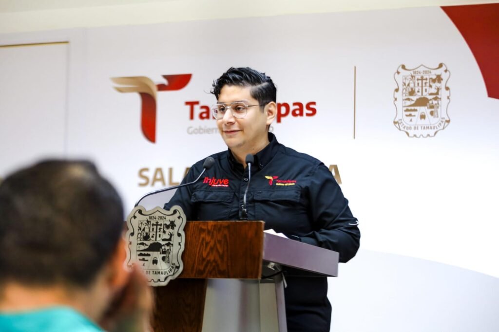 Durante el encuentro con los medios de comunicación en la sala de prensa en Palacio de Gobierno de Ciudad Victoria, el titular de la Juventud compartió tres anuncios relevantes de participación juvenil, destacando una Bolsa de Empleo Joven, Cursos Santander Juventud que Innova, y Arte que Transforma; Segunda Jornada Nacional de Tequios y Murales por la Paz y Contra las Adicciones.