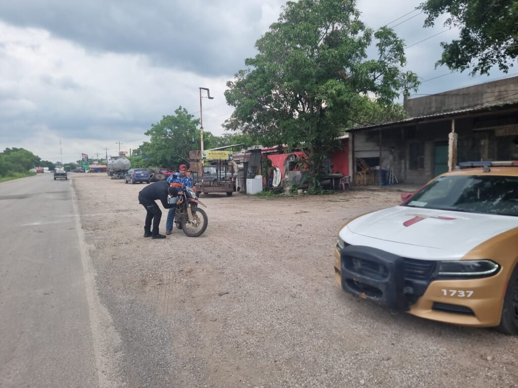 Aldama, Tamaulipas.- Como parte de la estrategia preventiva del delito, personal de la Guardia Estatal de Apoyo Carretero comisionado a la Estación Segura Aldama lleva a cabo el Operativo “Moto Segura” sobre la Carretera Federal 180 Costera del Golfo.