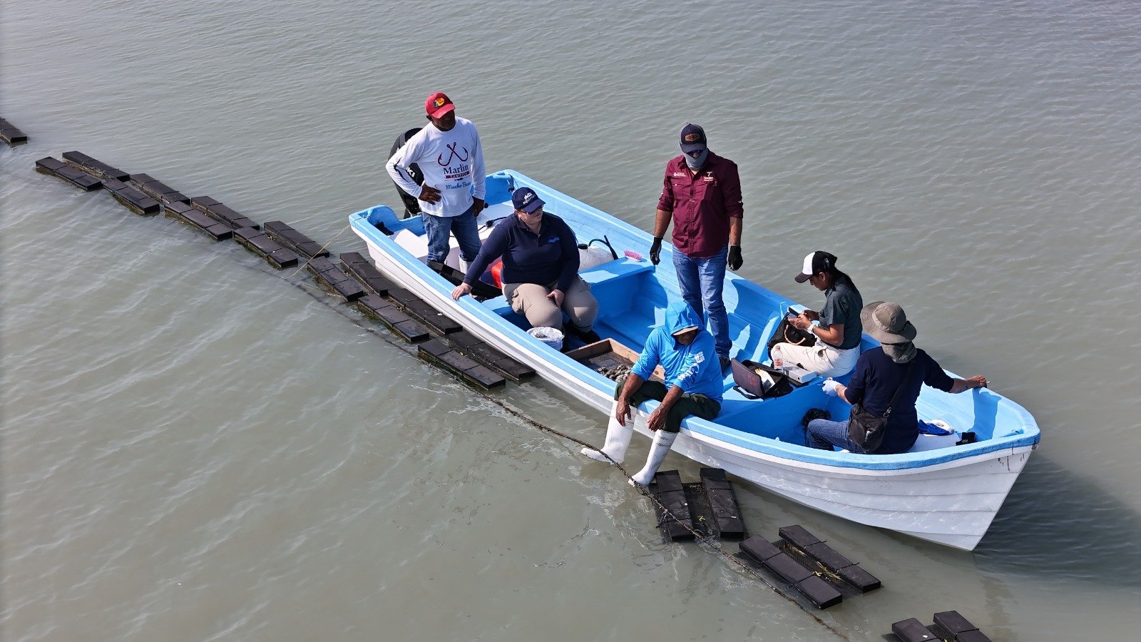 Enero 19 de 2026, Aldama, Tamaulipas.— Como parte del arranque de actividades del año 2026 en las granjas ostrícolas del estado, personal técnico de la Subsecretaría de Pesca y Acuacultura, encabezado por la Dra. Itzel Cruz, realizó una visita de supervisión a la granja de ostión ubicada en el ejido El Morón, en el municipio de Aldama, en coordinación con el Comité de Sanidad Acuícola del Estado de Tamaulipas.Durante la jornada de trabajo se llevó a cabo la revisión del estado general de los organismos y de las artes de cultivo empleadas en la producción.