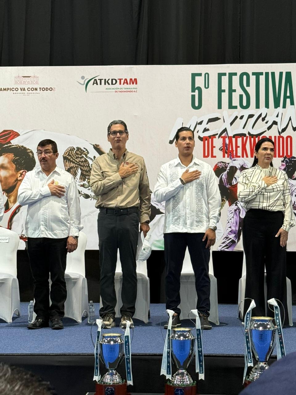En representación del gobernador Américo Villarreal Anaya, asistió Manuel Virués Lozano, director general del Instituto del Deporte de Tamaulipas, acompañado de autoridades estatales, municipales y federativas, entre ellas: Raymundo González, presidente de la Federación Mexicana de Taekwondo; Mónica Villarreal, presidenta municipal de Tampico; Erasmo González, presidente municipal de Ciudad Madero; Dámaso Anaya, rector de la Universidad Autónoma de Tamaulipas, y Hang Yoo Lee, entrenador de la selección nacional de México.