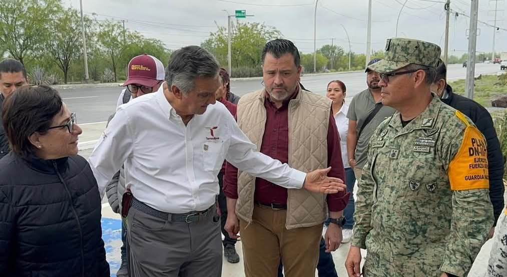 Reynosa, Tamaulipas.- El gobernador Américo Villarreal Anaya arribó a la ciudad de Reynosa, esta mañana, junto con la coordinadora nacional de Protección Civil, Laura Velázquez, con el propósito de evaluar daños y apoyar a las familias afectadas por las lluvias que se registraron en la región en las últimas 48 horas.