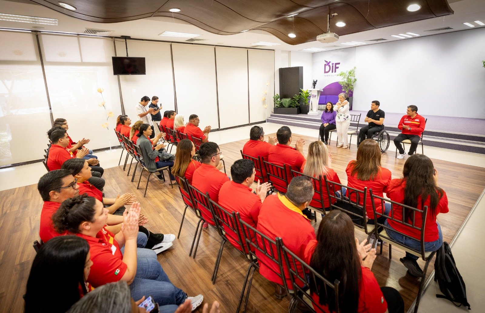 Ciudad Victoria, Tamaulipas.- Como parte del trabajo colaborativo entre sociedad civil, iniciativa privada y gobierno, el Sistema DIF Tamaulipas que preside la doctora María de Villarreal, fue testigo de la entrega de un donativo por parte de la cadena comercial Oxxo para la organización internacional Vida Independiente para Personas con Discapacidad A.C.