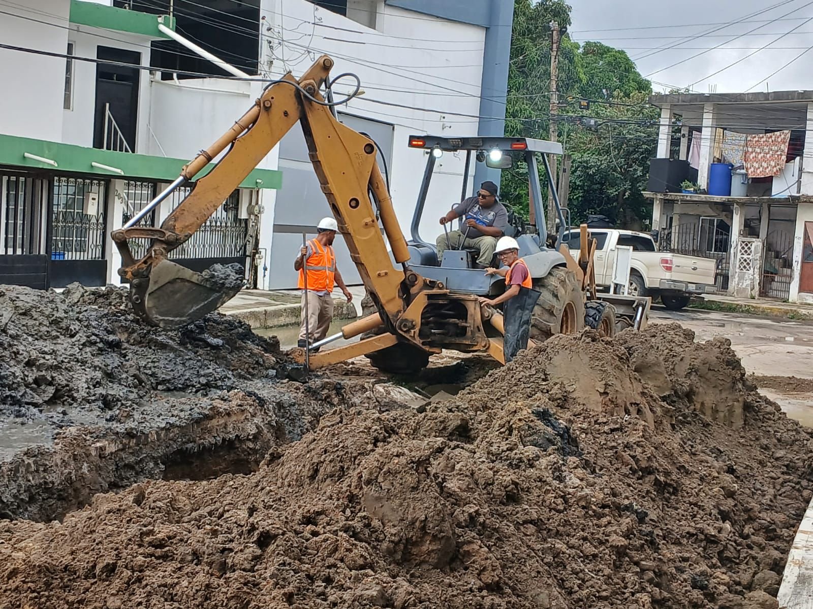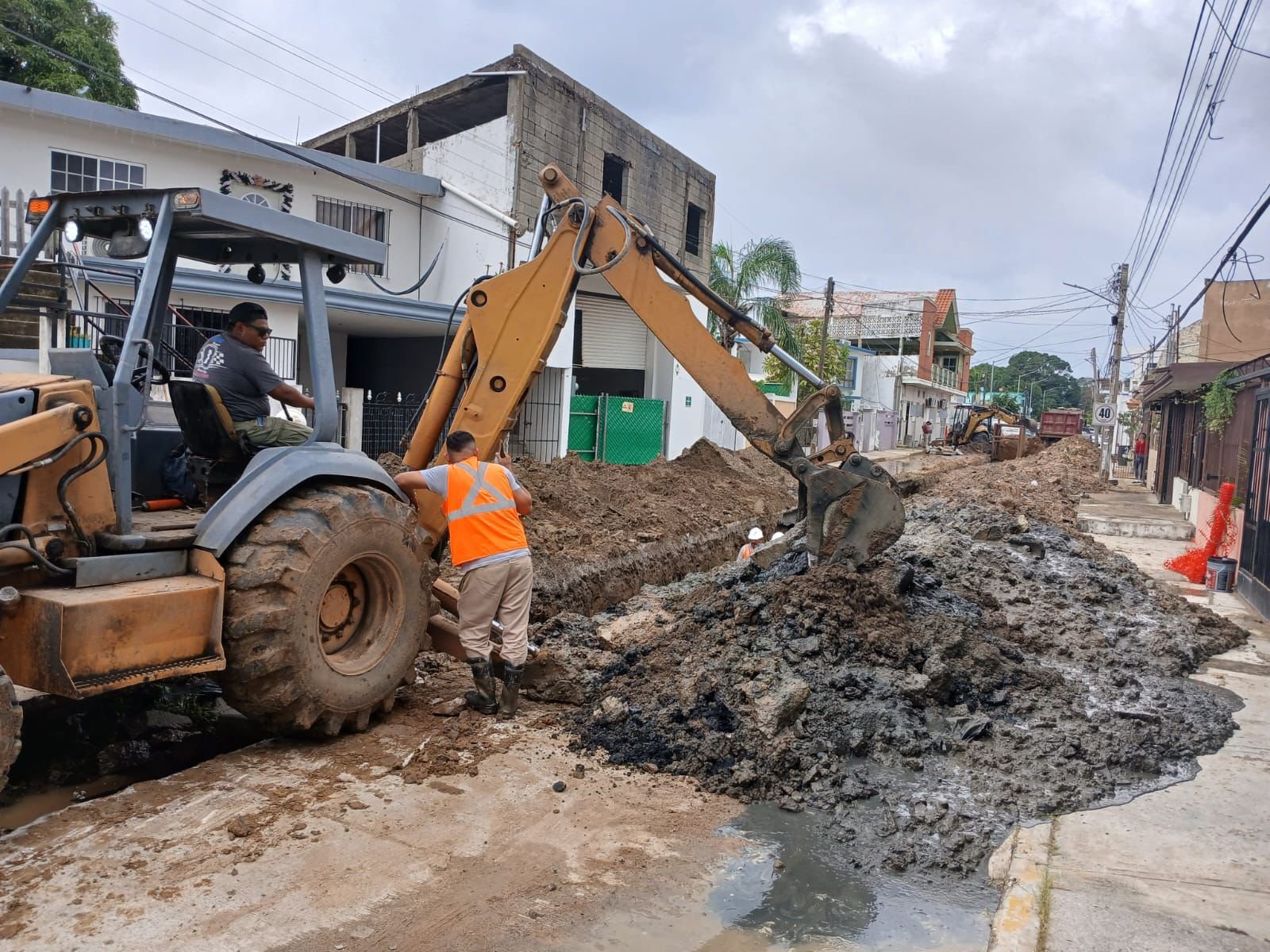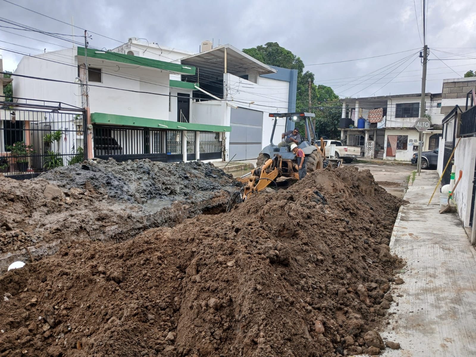 En la colonia Francisco Javier Mina se trabaja en la reconstrucción de 75 metros lineales de un colector de 18 pulgadas que cedió debido a su antigüedad, provocando un socavón en la zona. Esta situación hizo necesaria una intervención inmediata para corregir el daño y garantizar la seguridad de los habitantes.