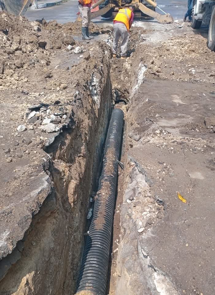 Debido a la antigüedad de la red, se repararon un total de 90 metros lineales de tubería de 12 pulgadas en la calle Guayaquil entre Morelia y Necaxa de la citada colonia, beneficiando a las familias que habitan en ese denso sector.