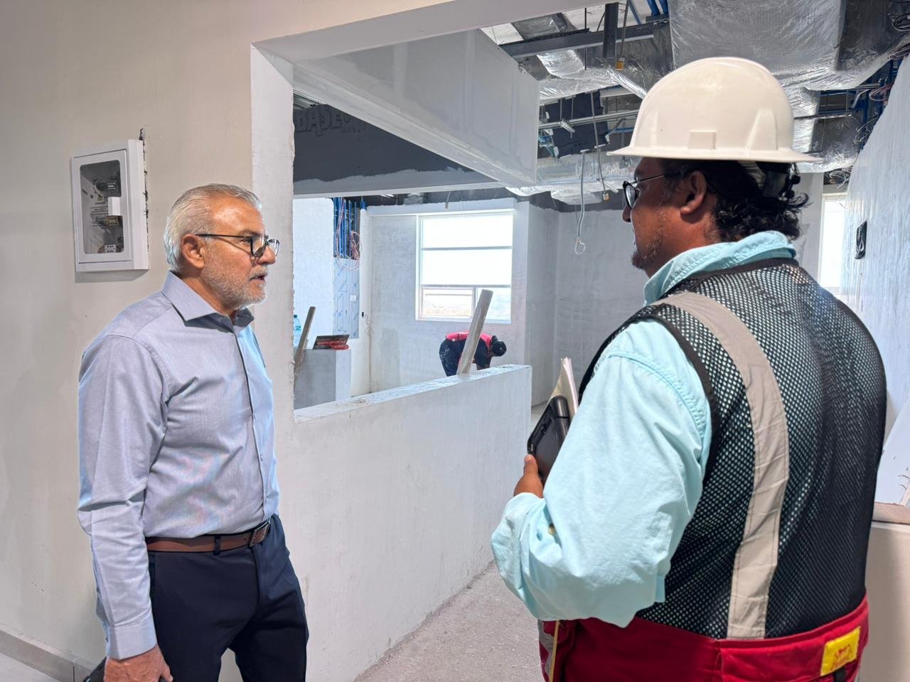 El secretario de Obras Públicas, Pedro Cepeda Anaya, informó que el complejo se encuentra en una etapa avanzada de ejecución, con áreas críticas ya concluidas, entre ellas urgencias, quirófanos, terapia intensiva, consulta externa y laboratorios.