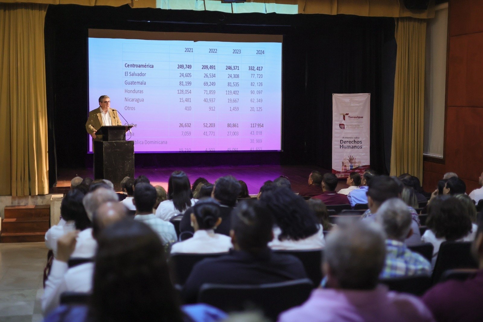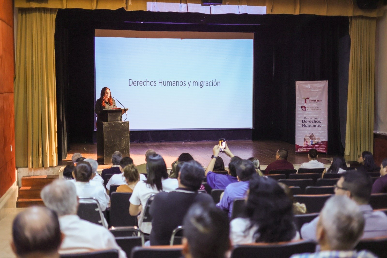 Ciudad Victoria, Tamaulipas.-Como parte de la política migratoria humanista del gobernador Américo Villarreal Anaya, la Secretaría de Bienestar Social organizó la conferencia “Derechos Humanos de los Migrantes y Personas en Contexto de Movilidad Humana”, dirigido a personas servidoras públicas del Estado, en el Auditorio “Consuelo Cantú Leal” de la Casa del Arte en esta capital.