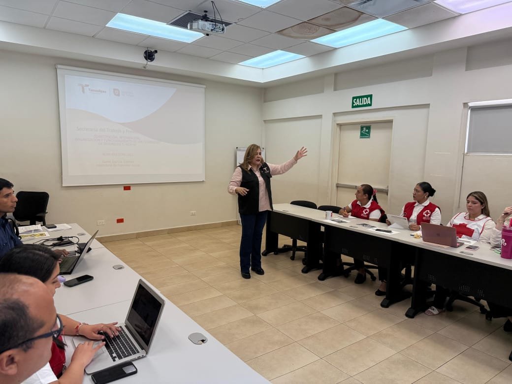 Tampico, Tamaulipas.- Con el objetivo de fortalecer la cultura de la prevención, mejorar las condiciones de seguridad en los centros de trabajo y reducir los riesgos laborales, la Secretaría del Trabajo y Previsión Social de Tamaulipas impartió una capacitación especializada al personal administrativo y operativo de la Cruz Roja Mexicana delegación Tampico, basada en la Norma Oficial Mexicana NOM-019-STPS-2011, referente a la constitución, integración, organización y funcionamiento de las Comisiones de Seguridad e Higiene.