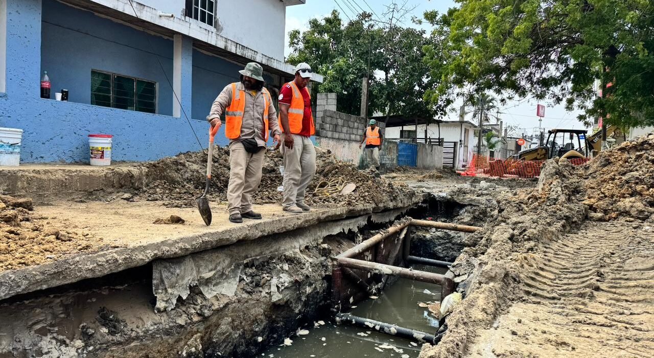 Con el propósito de reforzar el sistema de drenaje y brindar un servicio más eficiente, COMAPA SUR desarrolla trabajos de rehabilitación en la línea general de drenaje de la colonia Del Bosque, al norte de Tampico. Las acciones se concentran en la calle Olmo, entre la carretera Tampico–Mante y la calle Encino, donde se realiza
