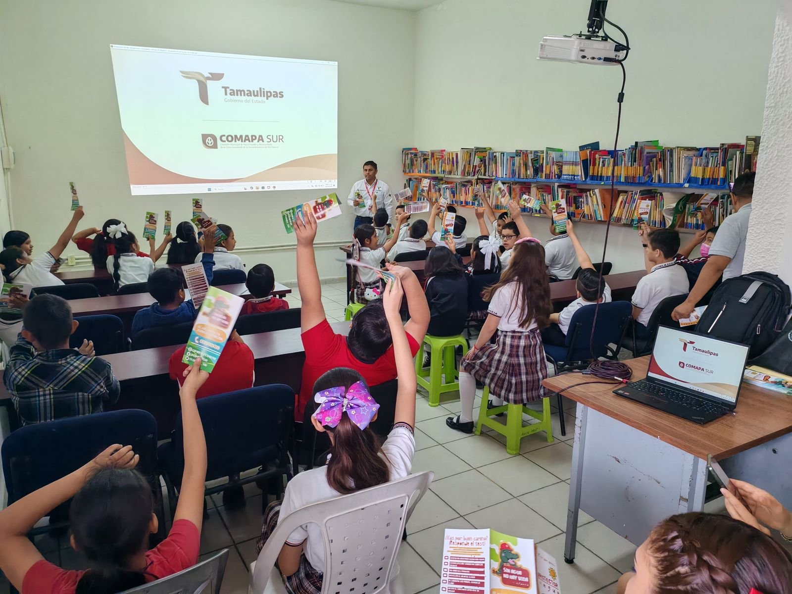 Como parte de estas actividades, personal del departamento de Cultura del Agua del organismo visitó la Escuela Primaria Profesora Aurelia García Rodríguez y la Escuela Primaria Profesor Francisco Nicodemo, ubicadas en Ciudad Madero, donde se impartieron pláticas dirigidas a alumnas y alumnos sobre la importancia del agua y la necesidad de cuidarla mediante prácticas responsables en la vida diaria.