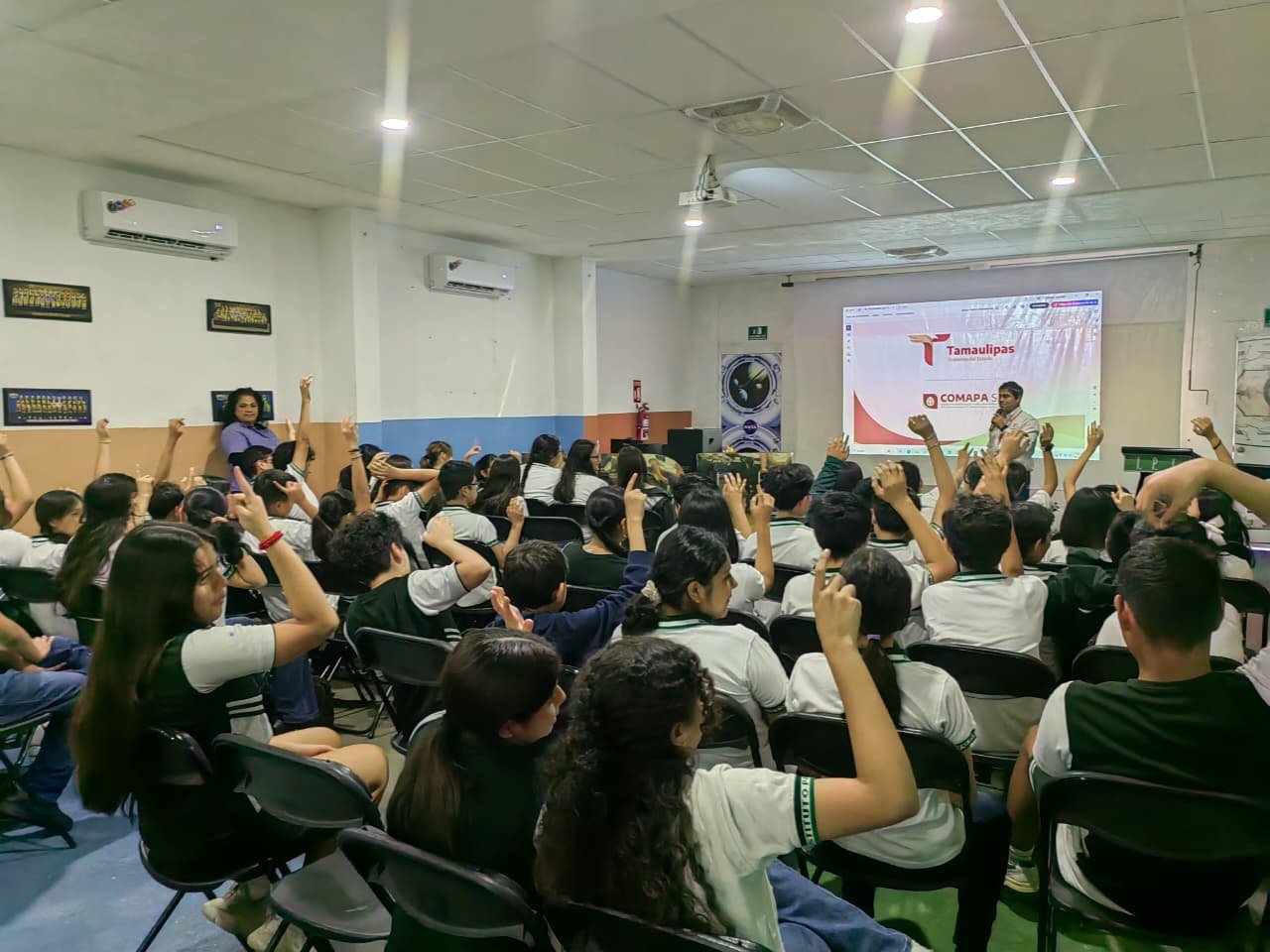 De igual manera, como parte del programa Juntos por el Agua, se impartieron pláticas a estudiantes de nivel secundaria del Instituto Panamericano de Tampico, reforzando valores de cultura hídrica y fomentando mayor conciencia sobre la importancia del recurso.