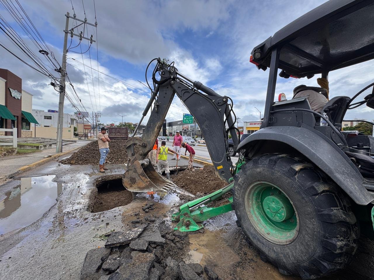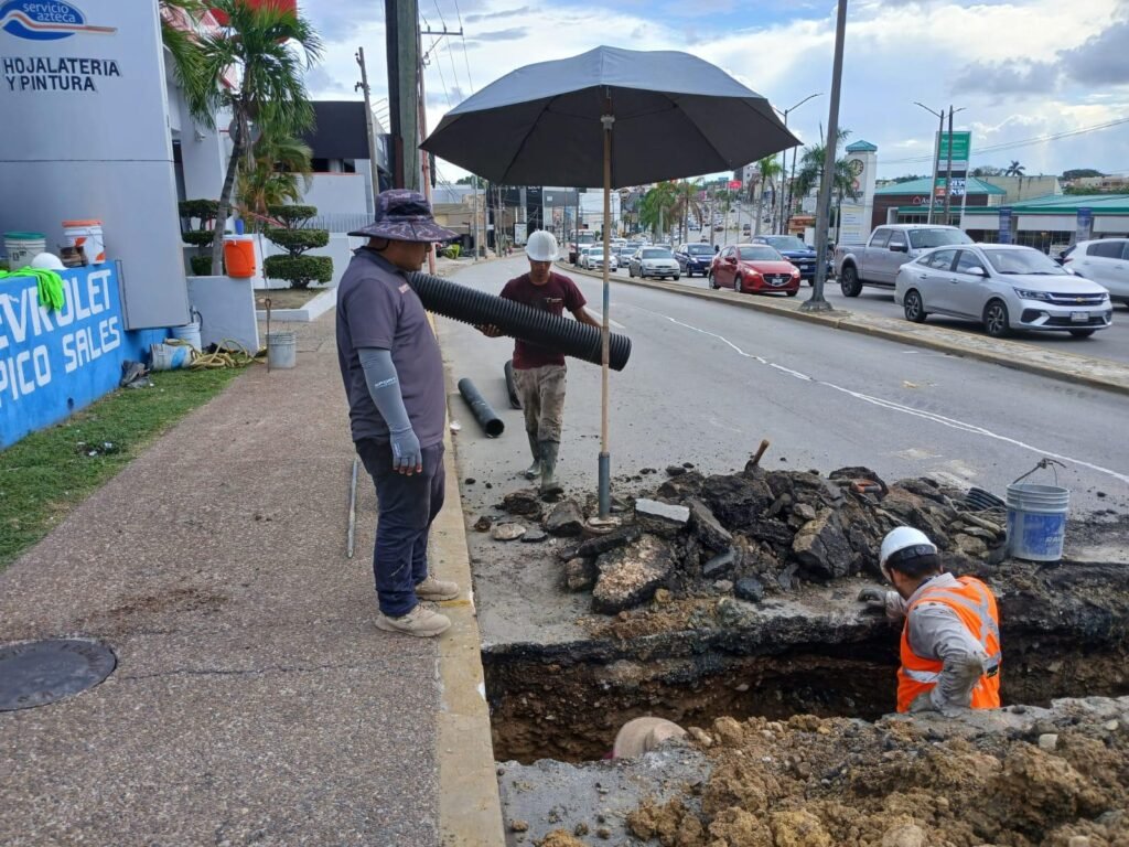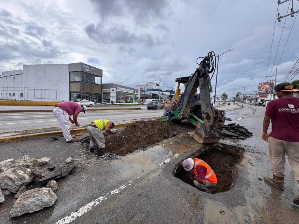 En la Avenida Hidalgo de Tampico, principal vialidad de la ciudad, se presentó un hundimiento derivado de las lluvias, el cual fue totalmente rehabilitado mediante la reposición de la línea afectada y la compactación del área. Posteriormente, se detectó otro punto debilitado en la misma zona, que por las condiciones del terreno y la persistencia de las lluvias fue rellenado y debidamente delimitado, a fin de garantizar la seguridad vial y prevenir un daño mayor, en tanto las condiciones climáticas permitan una intervención definitiva.