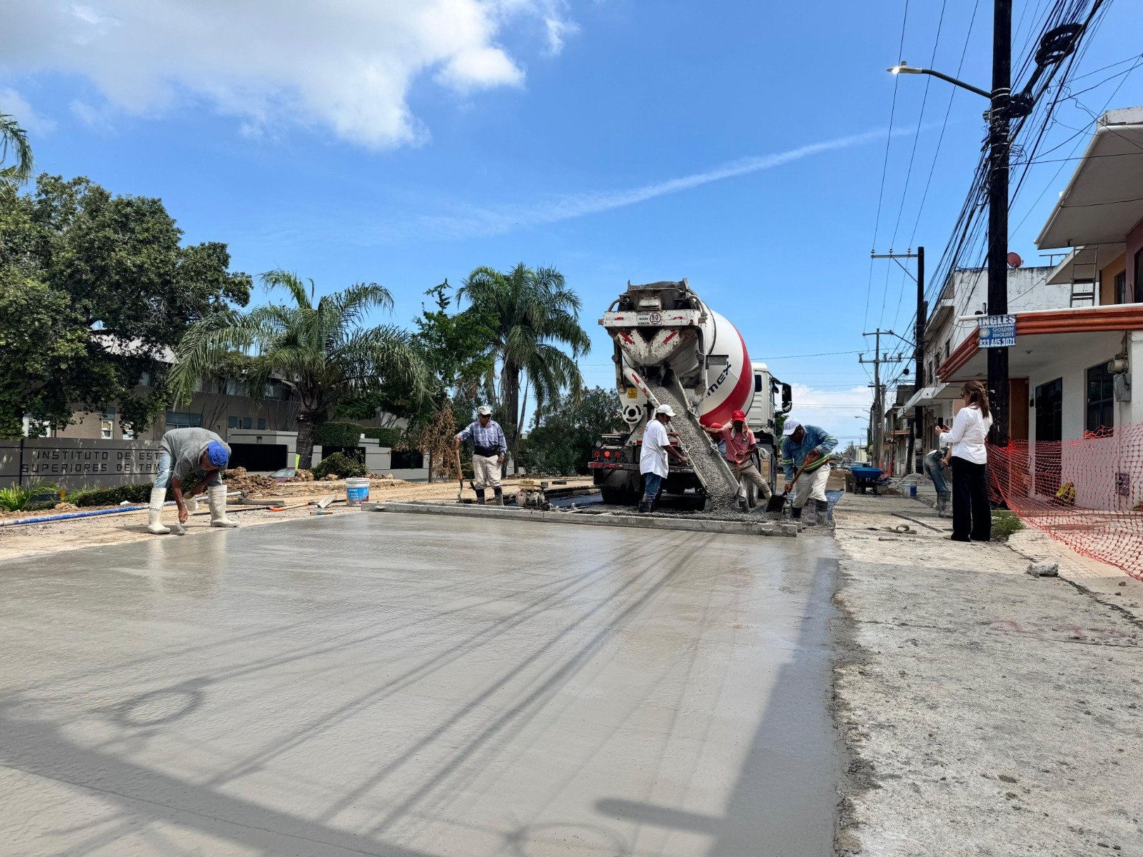 En seguimiento a las acciones de mejora integral de la infraestructura sanitaria, COMAPA SUR realiza los trabajos de pavimentación en la calle Burton E. Grossman de la colonia Niños Héroes, donde recientemente concluyó la quinta etapa de reconfiguración de un colector.