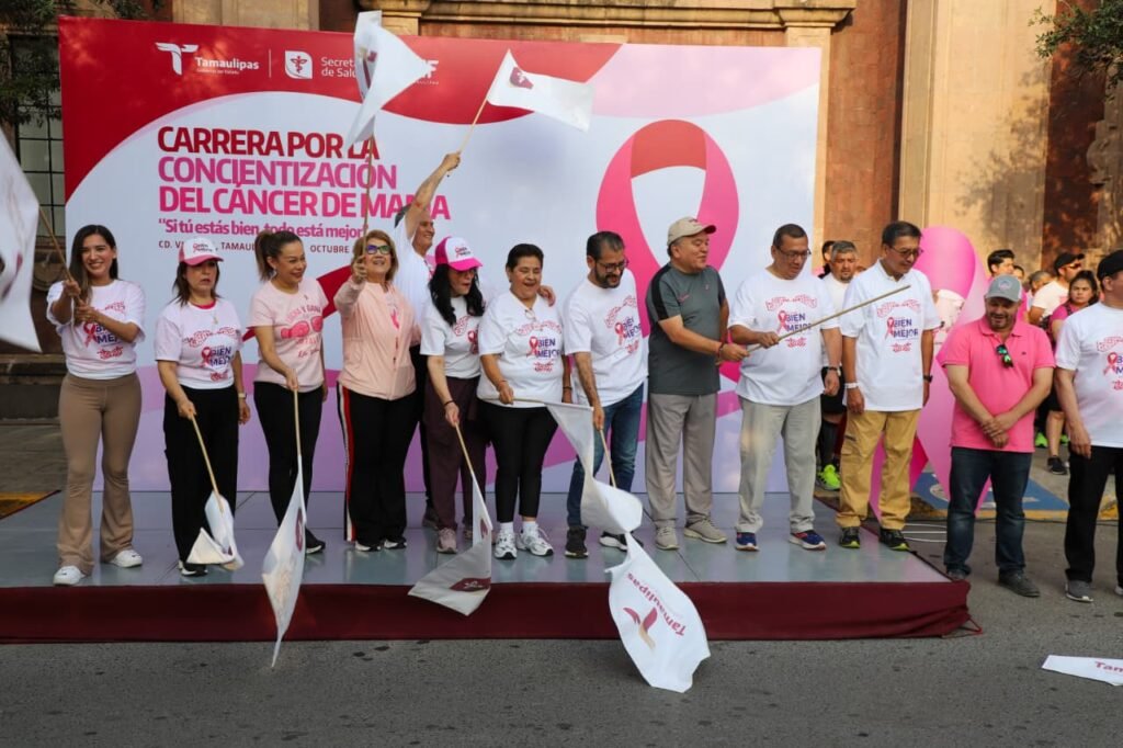 Como parte de las actividades para conmemorar el Día Internacional de Lucha contra el Cáncer de Mama y acompañado de la líder de la burocracia estatal, Blanca Valles Rodríguez; de la presidenta del Supremo Tribunal de Justicia, Tania Contreras López; y de su esposa la señora Yolanda Rivera de Hernández, el titular de Salud llevó a cabo la carrera de concientización y sensibilización de este padecimiento, así como incrementar la responsabilidad de mujeres, hombres y población en general en la prevención y detección temprana del cáncer de mama.
