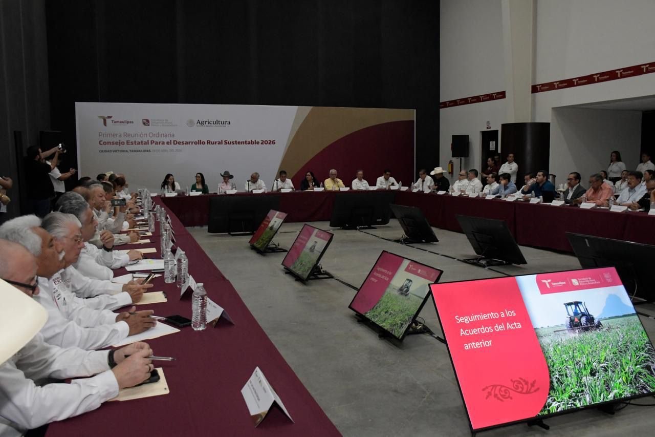 Abril 29 de 2026, Ciudad Victoria, Tamaulipas.– Con el propósito de informar sobre las acciones implementadas en lo que va del año, la Secretaría de Desarrollo Rural, Pesca y Acuacultura llevó a cabo la Primera Sesión Ordinaria del Consejo Estatal para el Desarrollo Rural Sustentable 2026, reafirmando el compromiso de impulsar la productividad, la innovación y el bienestar de las familias del campo tamaulipeco.