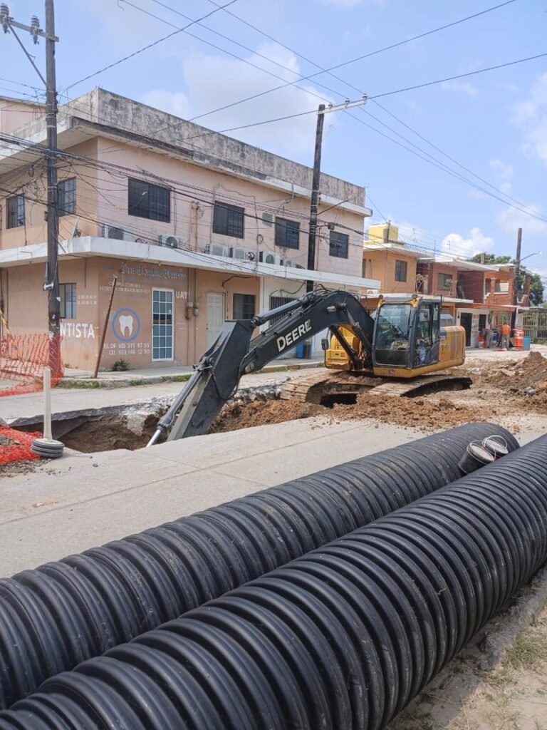 Con el respaldo del Gobierno del Estado de Tamaulipas y la Secretaría de Recursos Hidráulicos para el Desarrollo Social, COMAPA SUR avanza de manera significativa en la reconfiguración de un importante colector sanitario que beneficiará a miles de habitantes del norte de Tampico.