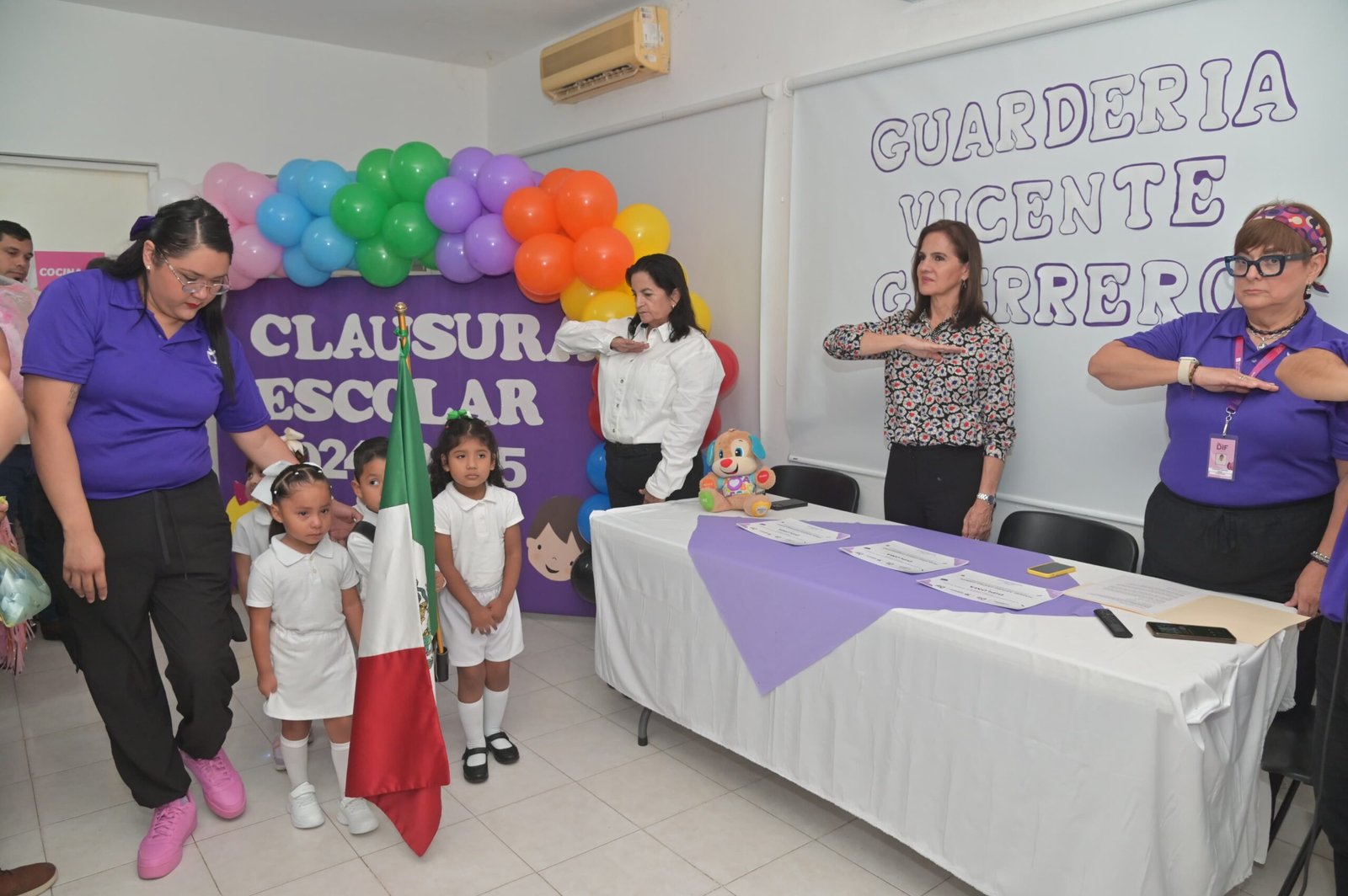La Presidenta del Sistema DIF Tampico, Dra. Luz Adriana Villarreal Anaya, refrendó su compromiso con el cuidado y la formación inicial de la niñez, al encabezar la ceremonia de fin de Cursos de la Guardería Infantil Vicente Guerrero.