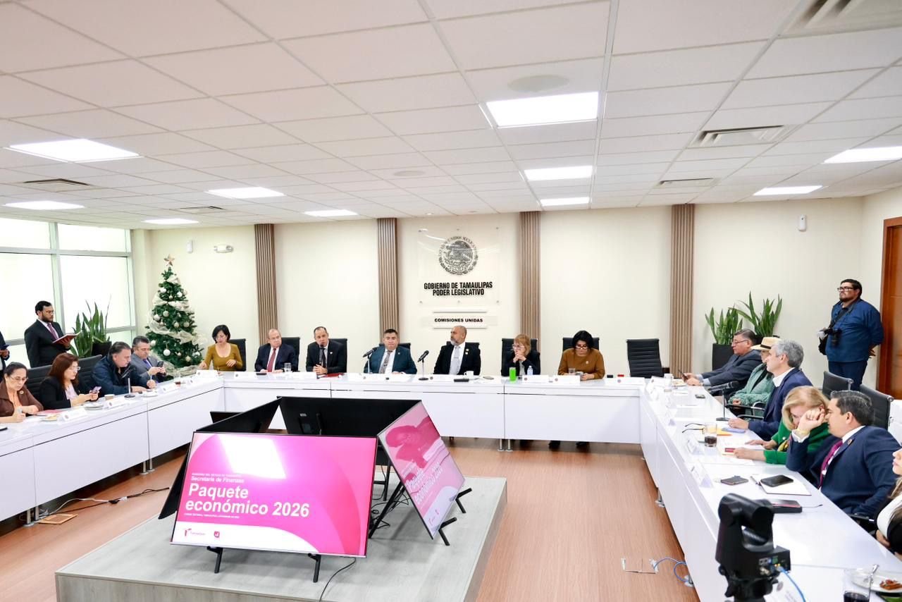 Diciembre 10 de 2025, Ciudad Victoria, Tamaulipas. – El Paquete Económico 2026 consolida la política humanista del gobernador Américo Villarreal Anaya al priorizar el bienestar de las familias, la estabilidad financiera y la inversión pública para fortalecer la transformación del estado, señaló el secretario de Finanzas, Carlos Irán Ramírez González, al presentarlo ante el diputado Isidro Jesús Vargas Fernández, titular de la Comisión de Finanzas, así como ante la Comisión de Estudios Legislativos Segunda del Congreso del Estado.