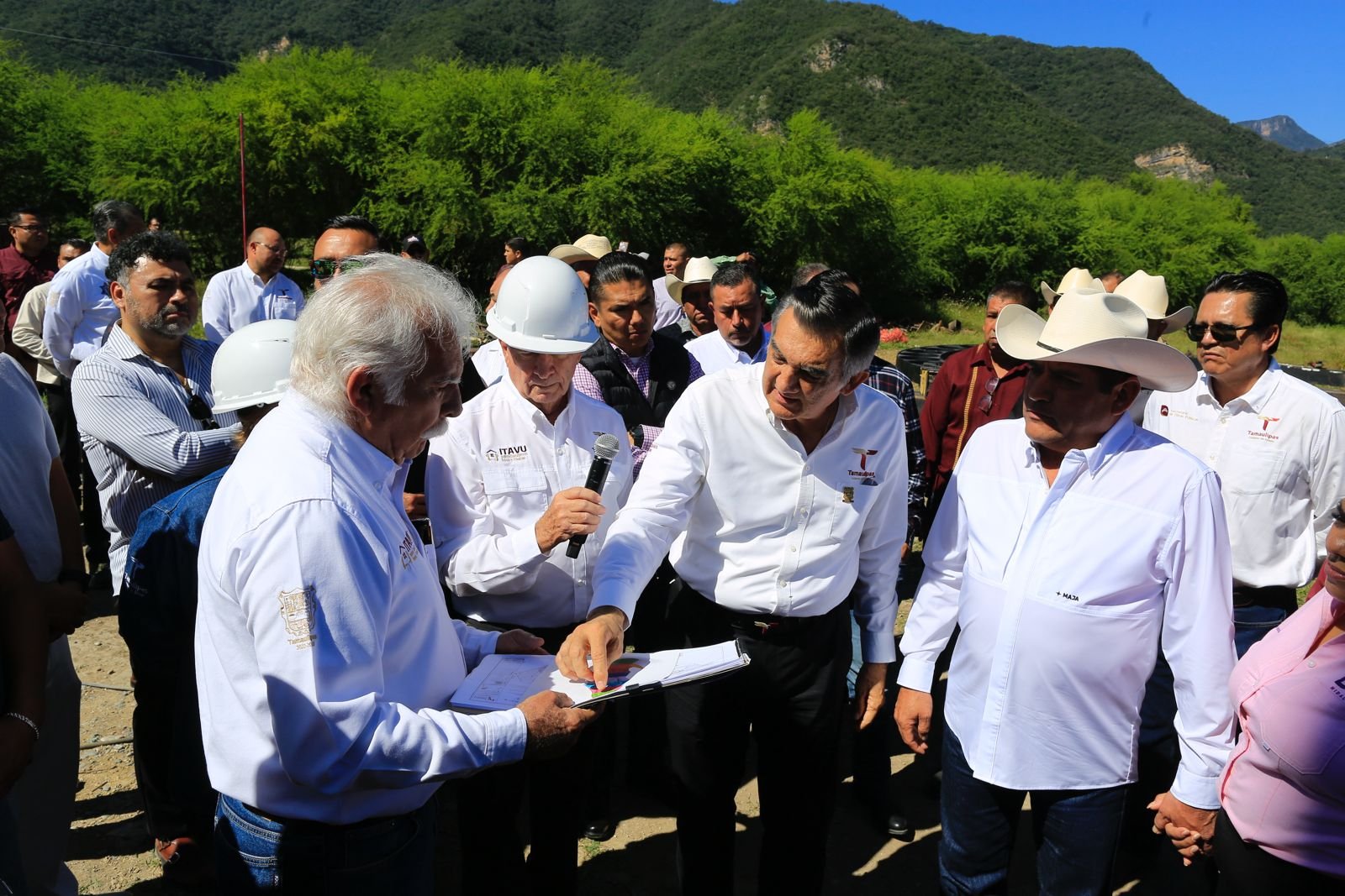 Noviembre 05 de 2025, Hidalgo, Tamaulipas.- Será el próximo 12 de diciembre cuando se entregue la primera etapa de la escultura monumental de la Virgen de la Misericordia, la más grande de América Latina, que se edifica en el Santuario de El Chorrito, anunció el gobernador Américo Villarreal Anaya durante su visita a este municipio.