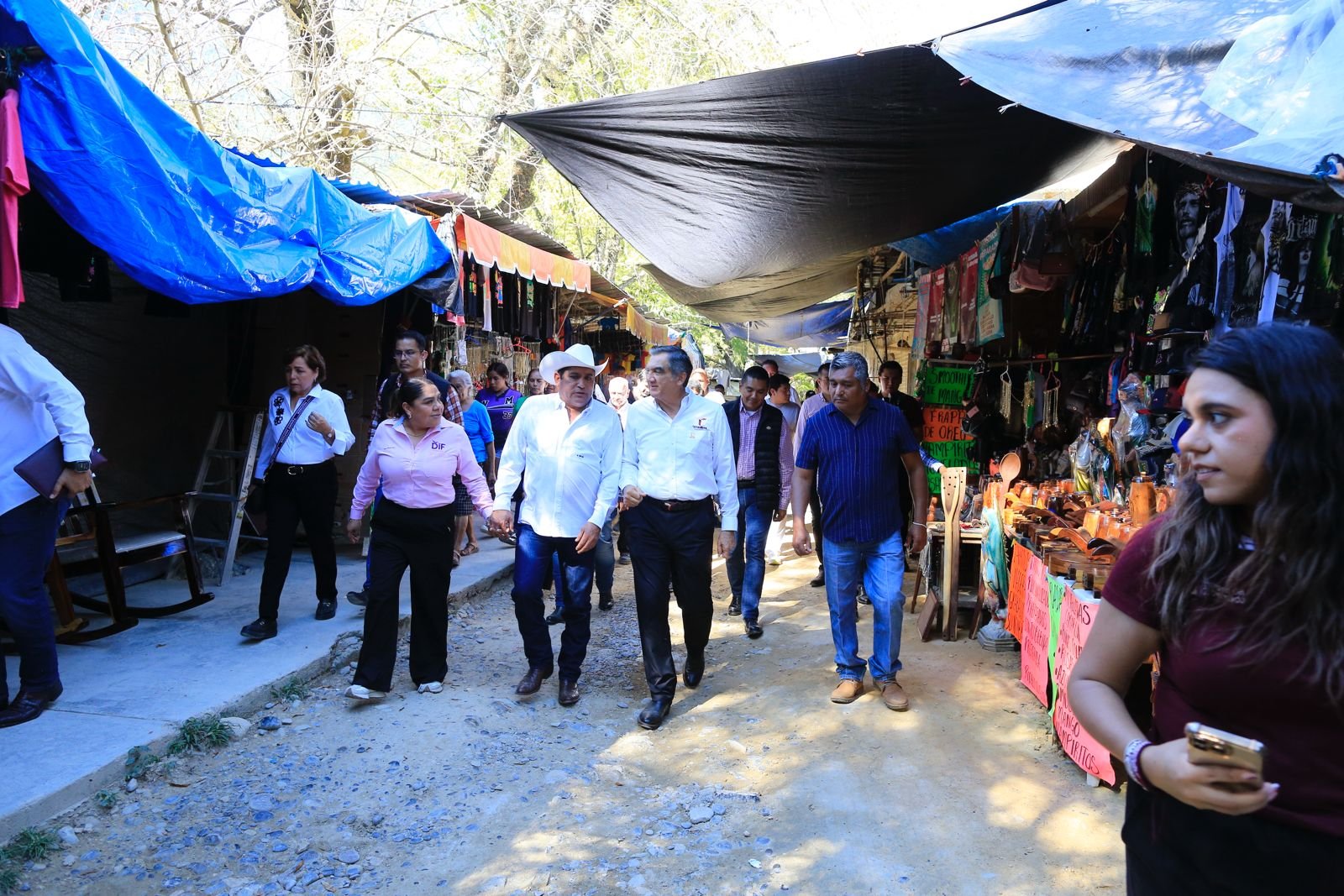 Como parte de su visita al poblado El Chorrito, Villarreal Anaya caminó hasta el santuario donde se encuentra el nicho de la virgen y saludó a los vecinos del lugar, quienes lo recibieron entusiastamente y le agradecieron las obras que realiza.