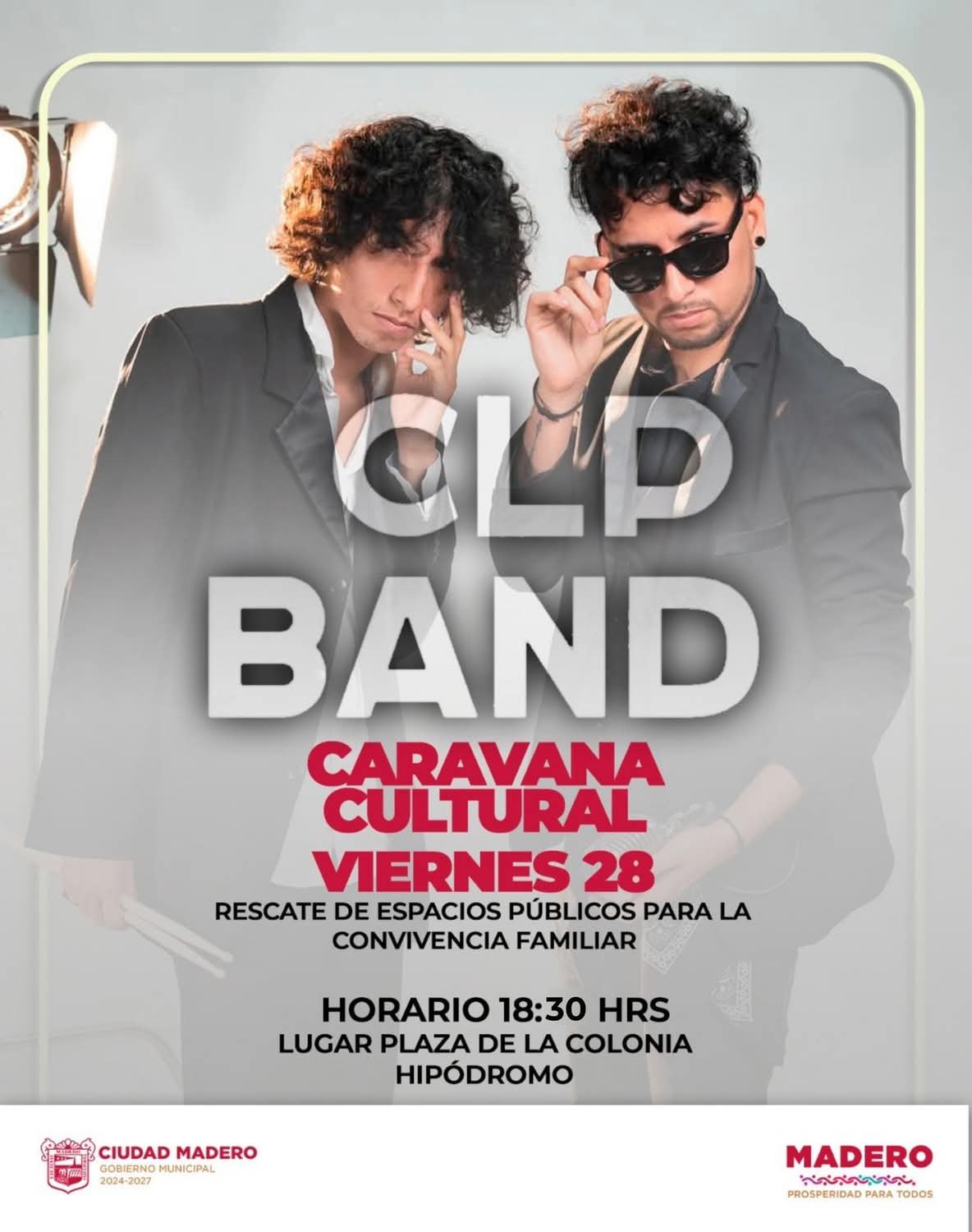Manuel Chirinos Meza director de Cultura del Ayuntamiento, dio a conocer que este viernes 28 de marzo, como parte de la “Caravana cultural”, la agrupación CLP Band se presentará en la Plaza de la colonia Hipódromo a las 18:30 horas, ofreciendo un espectáculo que busca promover el arte y la convivencia entre las familias maderenses.