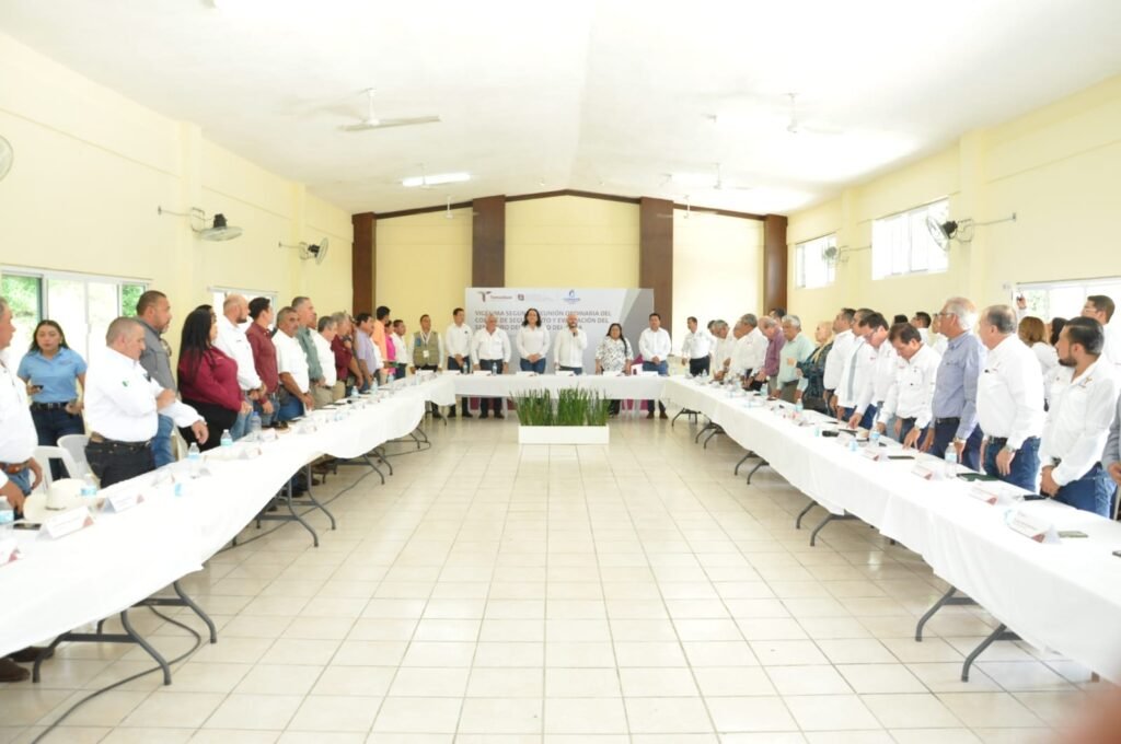 Octubre 08 de 2025, Nuevo Morelos, Tamaulipas. – En seguimiento a las políticas hídricas impulsadas por el gobernador Américo Villarreal Anaya, el secretario de Recursos Hidráulicos para el Desarrollo Social, Raúl Quiroga Álvarez, encabezó en el municipio de Nuevo Morelos la Vigésima Segunda Reunión Ordinaria del Comité de Seguimiento del Semáforo del Cuidado del Agua, acompañado por la alcaldesa Yaneth Nájera Cedillo y la gerente general de COMAPA, Shintia Martínez Rodríguez.