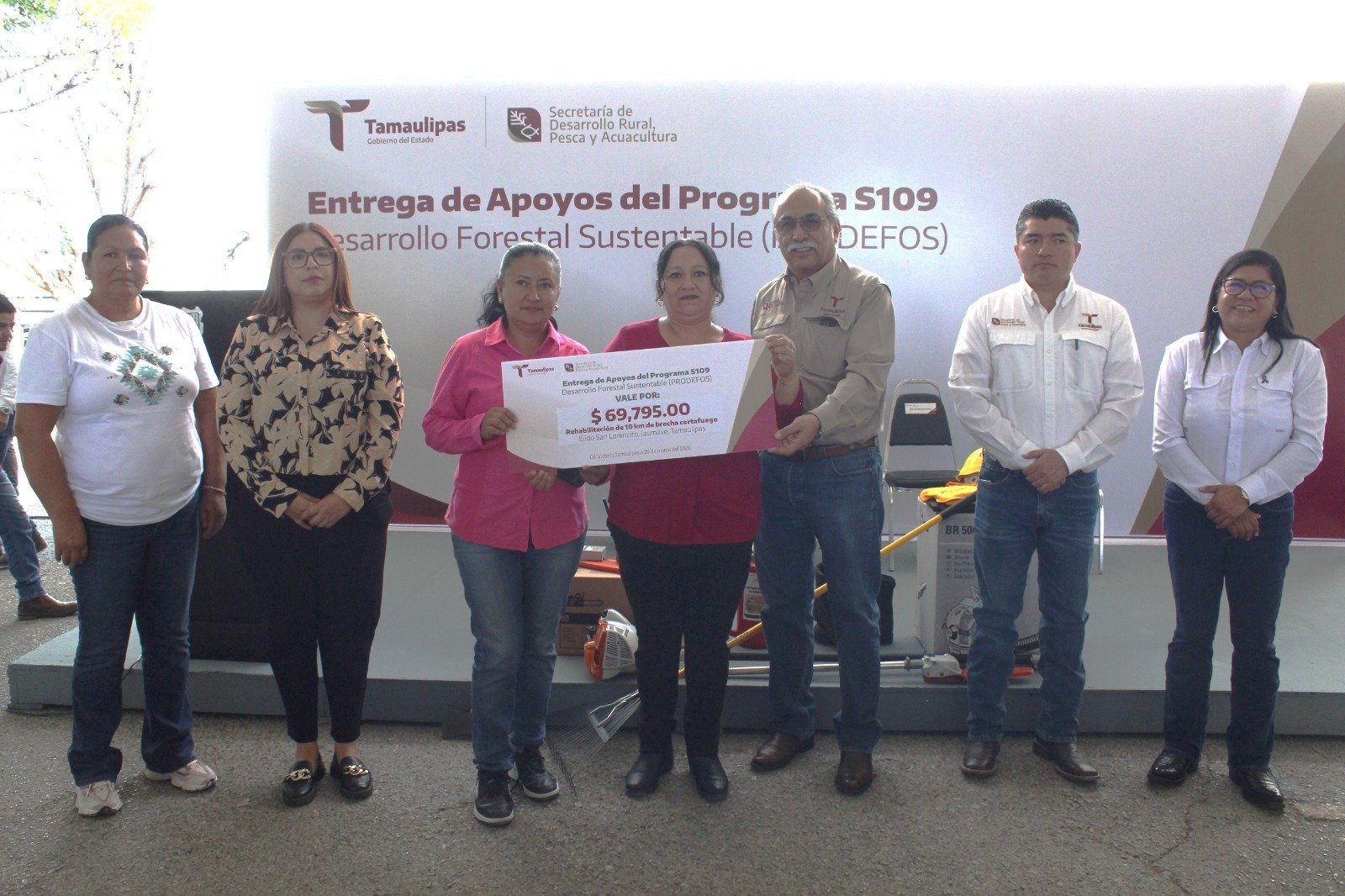 En apoyo directo a productores forestales, integrantes del ejido Rafael Villarreal, en Soto la Marina, y del ejido El Nogalito, en Casas, recibieron un total de 20 motosierras, fortaleciendo así sus actividades de aprovechamiento forestal.