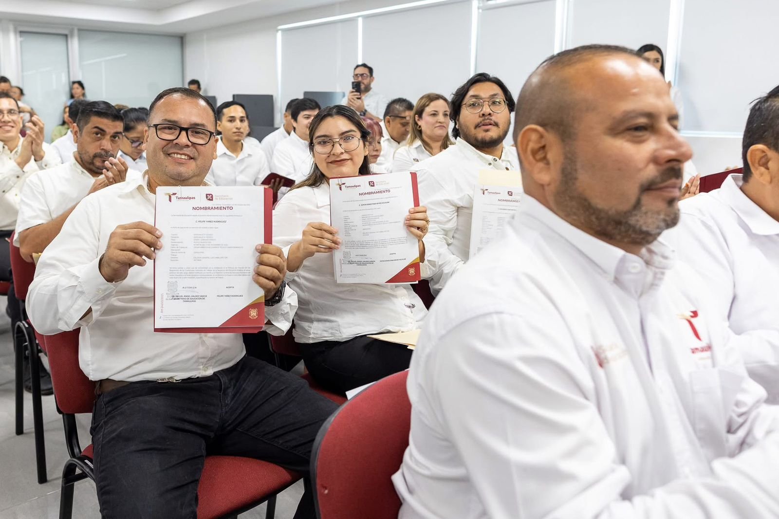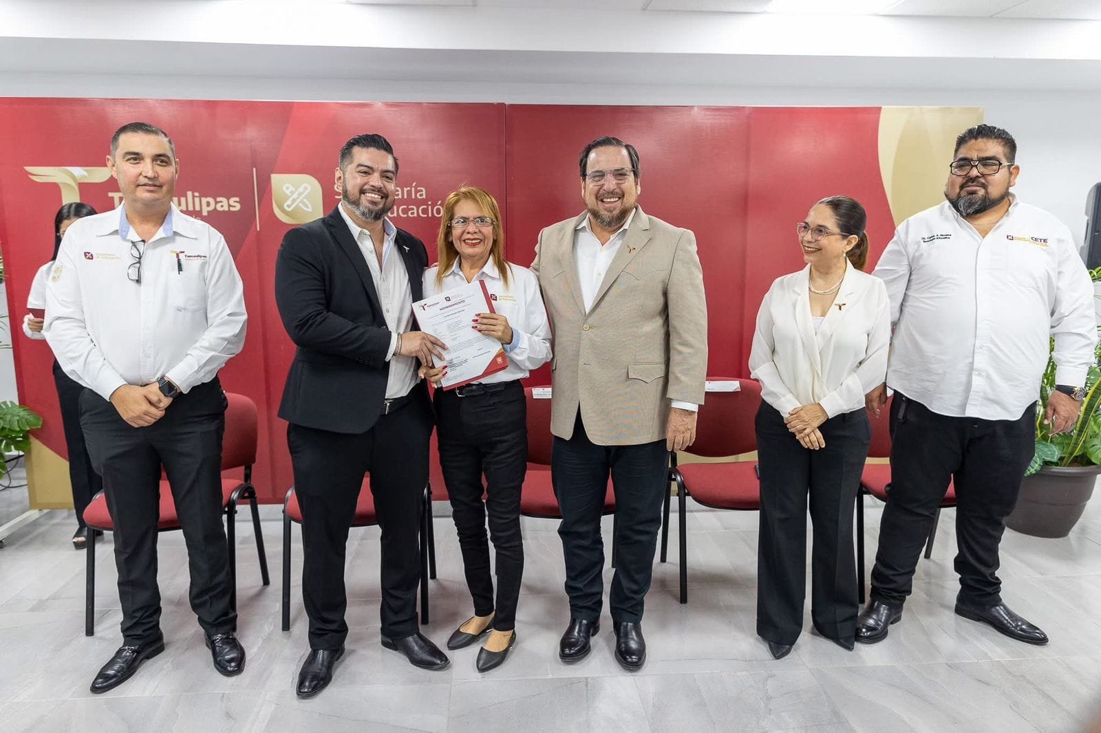 En una ceremonia presidida por Miguel Ángel Valdez García, secretario de Educación de Tamaulipas, se otorgaron 55 nombramientos de plazas más a trabajadores del CETE con 10, 20 y hasta 30 años de antigüedad laboral, para sumarse a los 180 entregados en septiembre pasado.