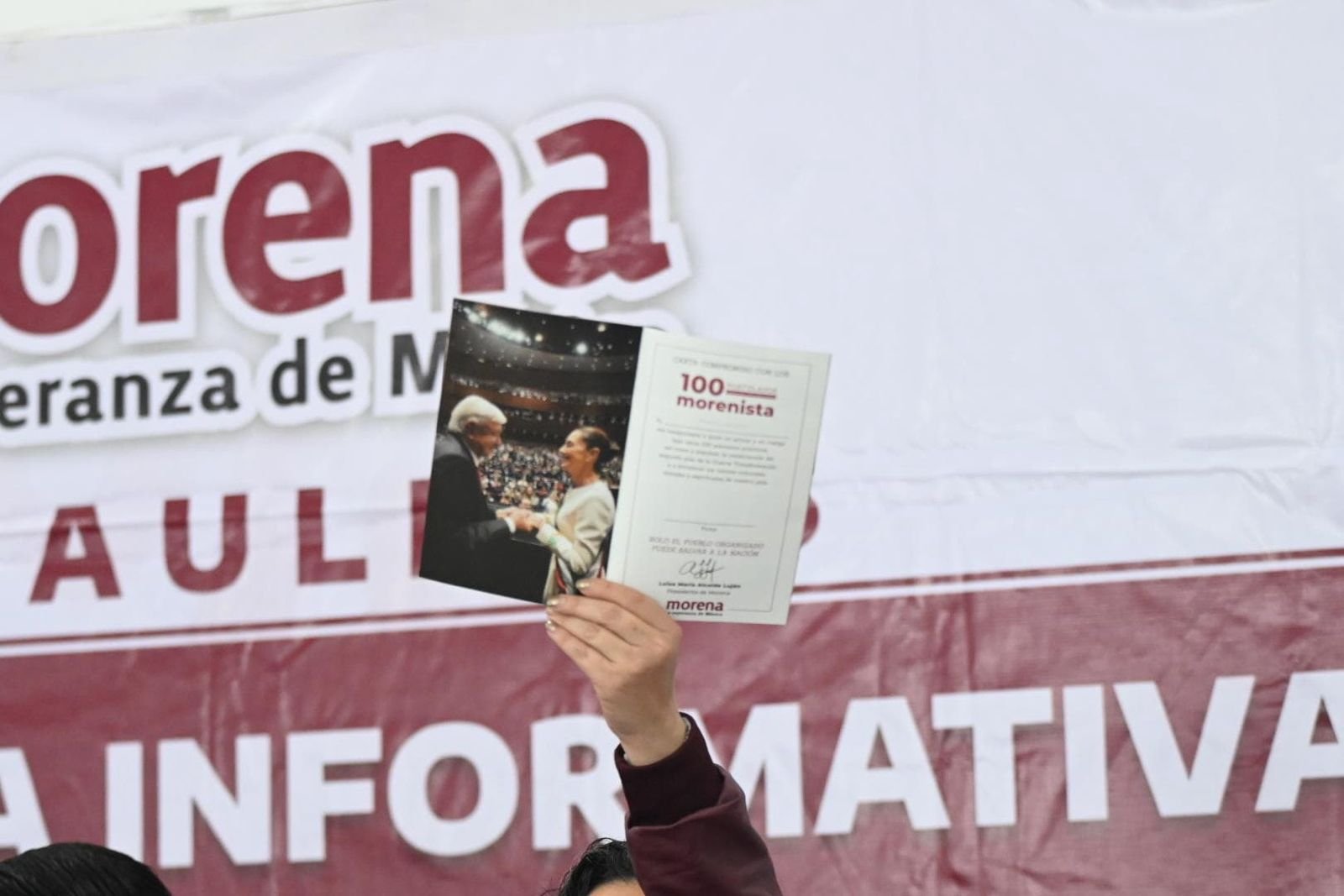 La presidenta Lupita Gómez llamó a firmar y reafirmar los 100 postulados de un morenista, así como a formar círculos y circulas de estudio para debatir los principios del movimiento.
