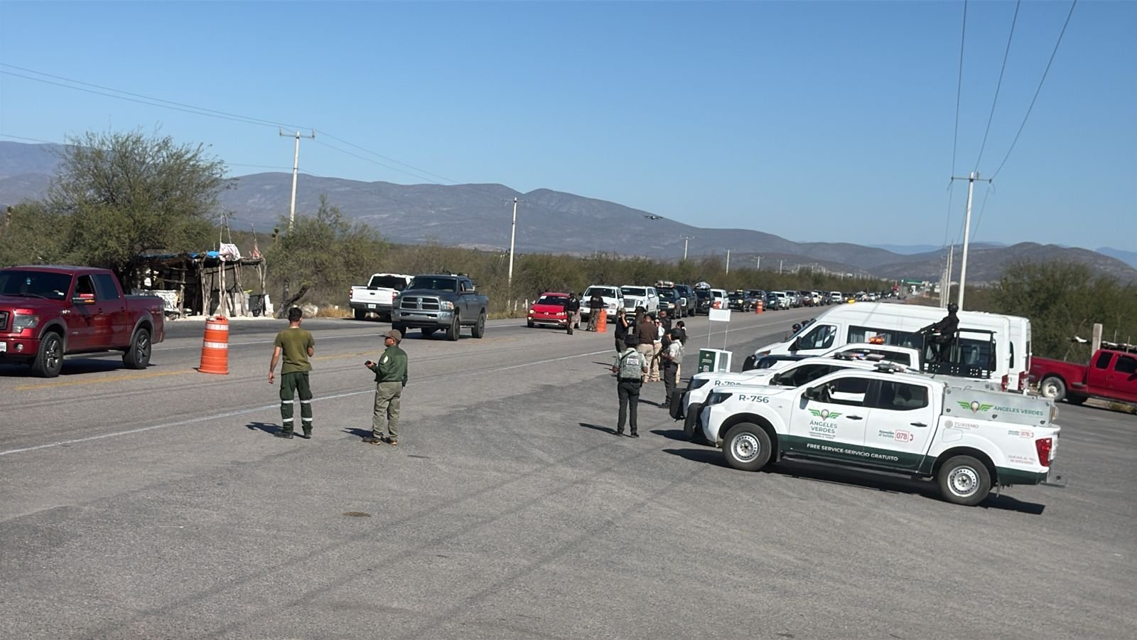 En ese punto, la caravana fue recibida por autoridades de la Fuerza Civil del estado de San Luis Potosí y la Guardia Nacional, quienes continuaron con el acompañamiento en la entidad vecina.