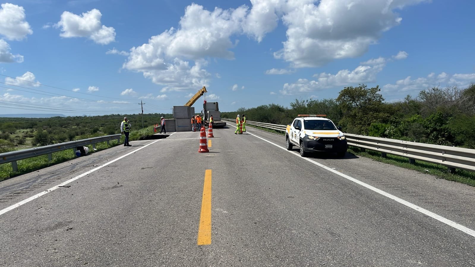 Cepeda Anaya agregó que en tramos federales hay daños en 1050 metros, de los cuales ya se avanzó en las labores de rehabilitación un 55 por ciento.