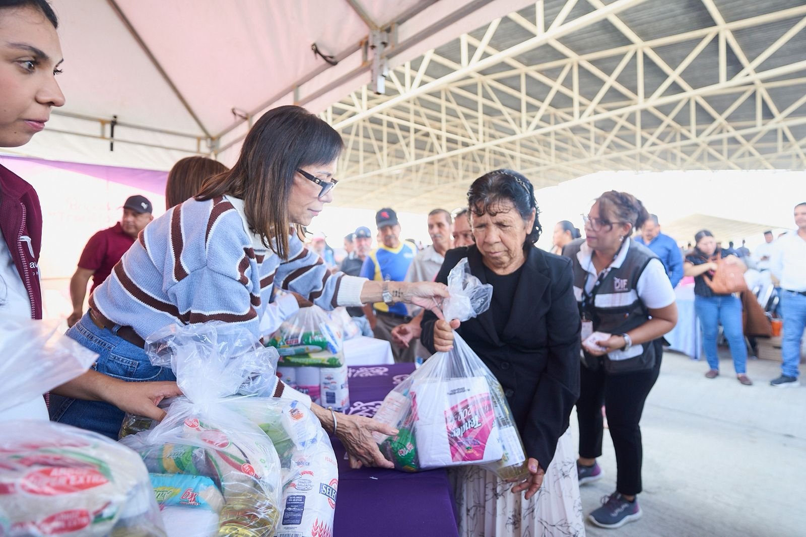 “Estamos muy contentos de compartir la oportunidad de saludarlos, verlos, atenderlos y escuchar las necesidades más sentidas que tienen ustedes. Es el momento de acercarse a nosotros, acudir al área de atención ciudadana para expresar de frente qué les hace falta y qué requieren ahora. Se entregan apoyos funcionales, aparatos auditivos, actas de nacimiento, escrituras de propiedad, lentes y muchos beneficios más que pueden aprovechar hoy”, señaló Patricia Lara Ayala, directora general del DIF Estatal, al arribar al evento.