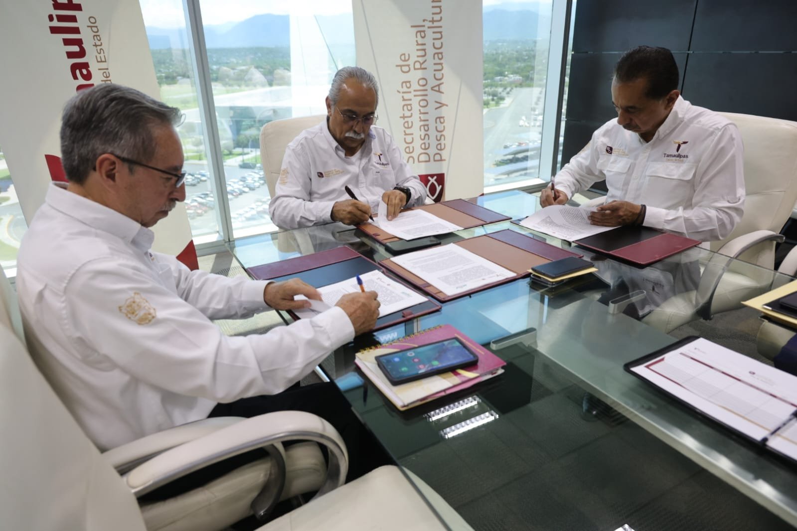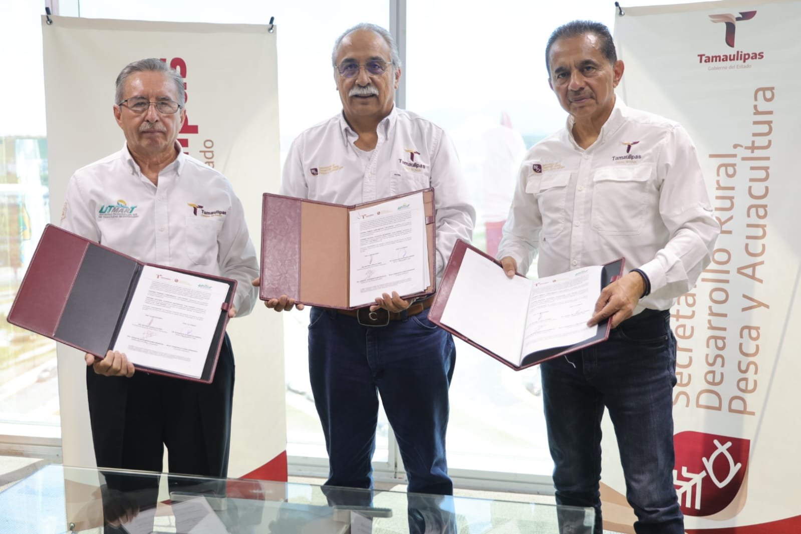 Ciudad Victoria, Tamaulipas. – Refrendando el compromiso con el fortalecimiento del sector pesquero y acuícola del estado, la Secretaría de Desarrollo Rural, Pesca y Acuacultura, a través de la Subsecretaría de Pesca y Acuacultura, firmó un Convenio Marco de Colaboración con la Universidad Tecnológica del Mar de Tamaulipas Bicentenario (UTMART), con sede en La Pesca, municipio de Soto la Marina.
