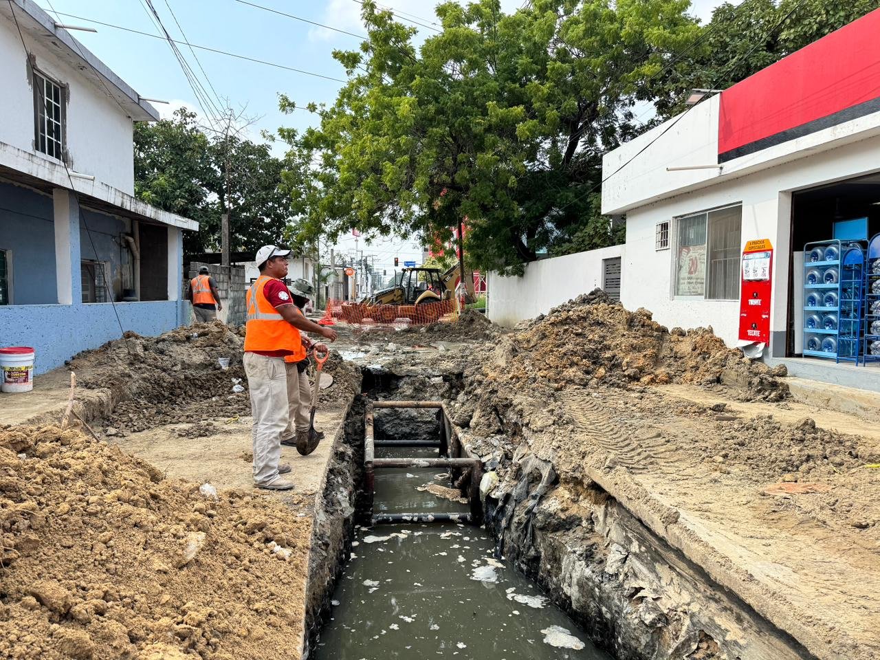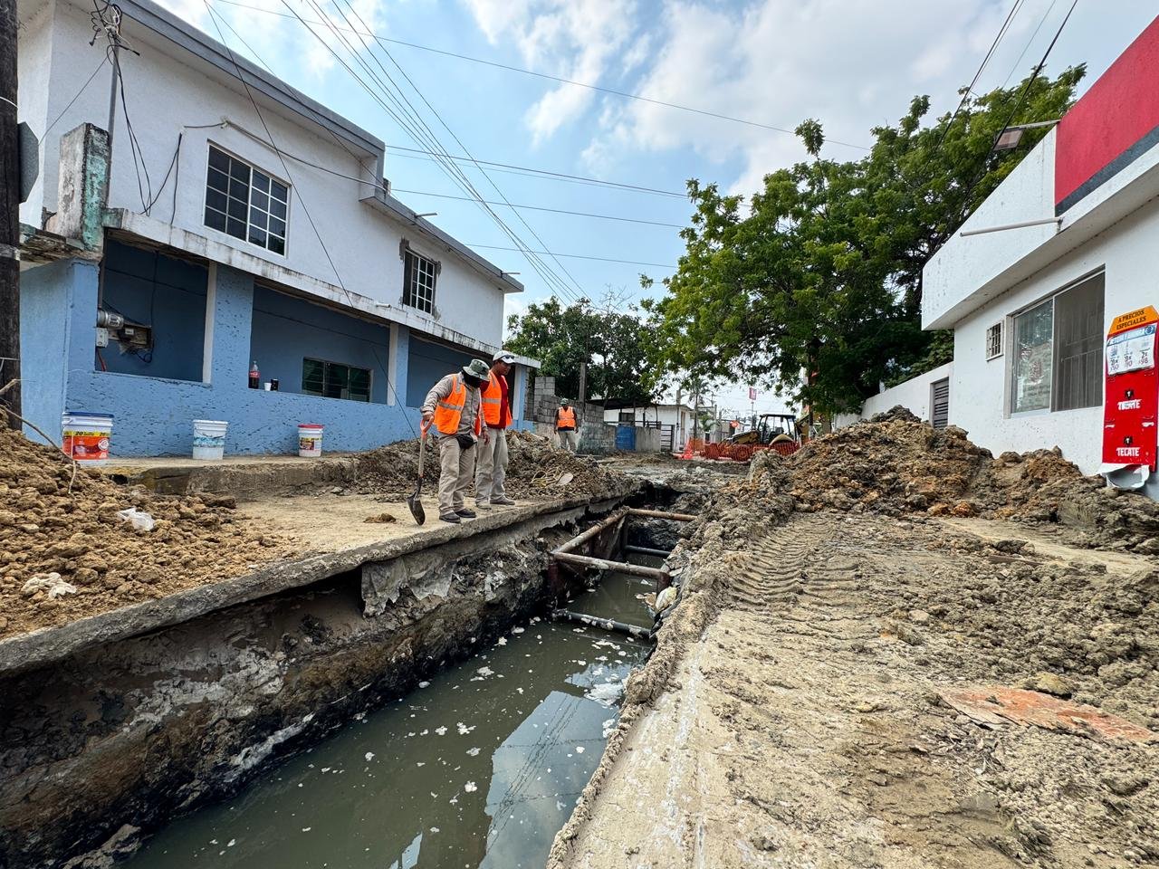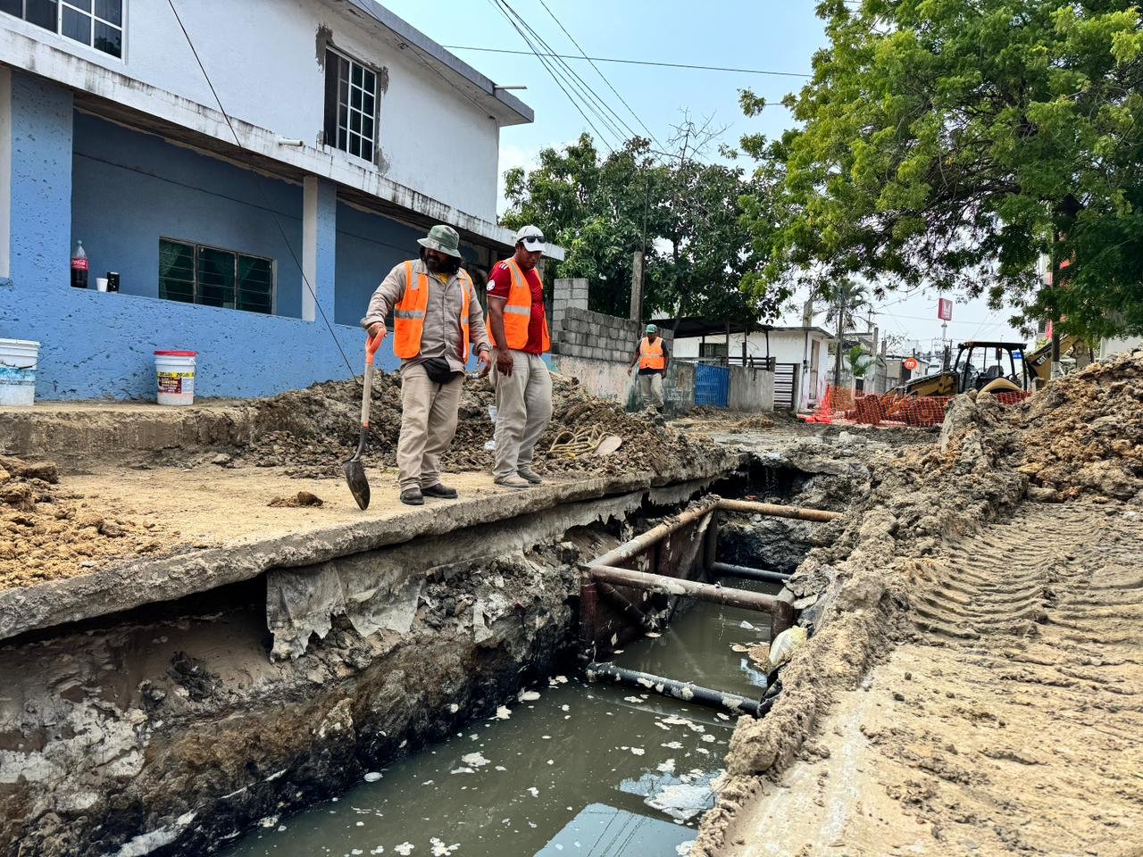Las acciones se concentran en la calle Olmo, entre la carretera Tampico–Mante y la calle Encino, donde se realiza el reemplazo de alrededor de 60 metros lineales de tubería de 12 pulgadas de diámetro, como parte de una intervención integral.