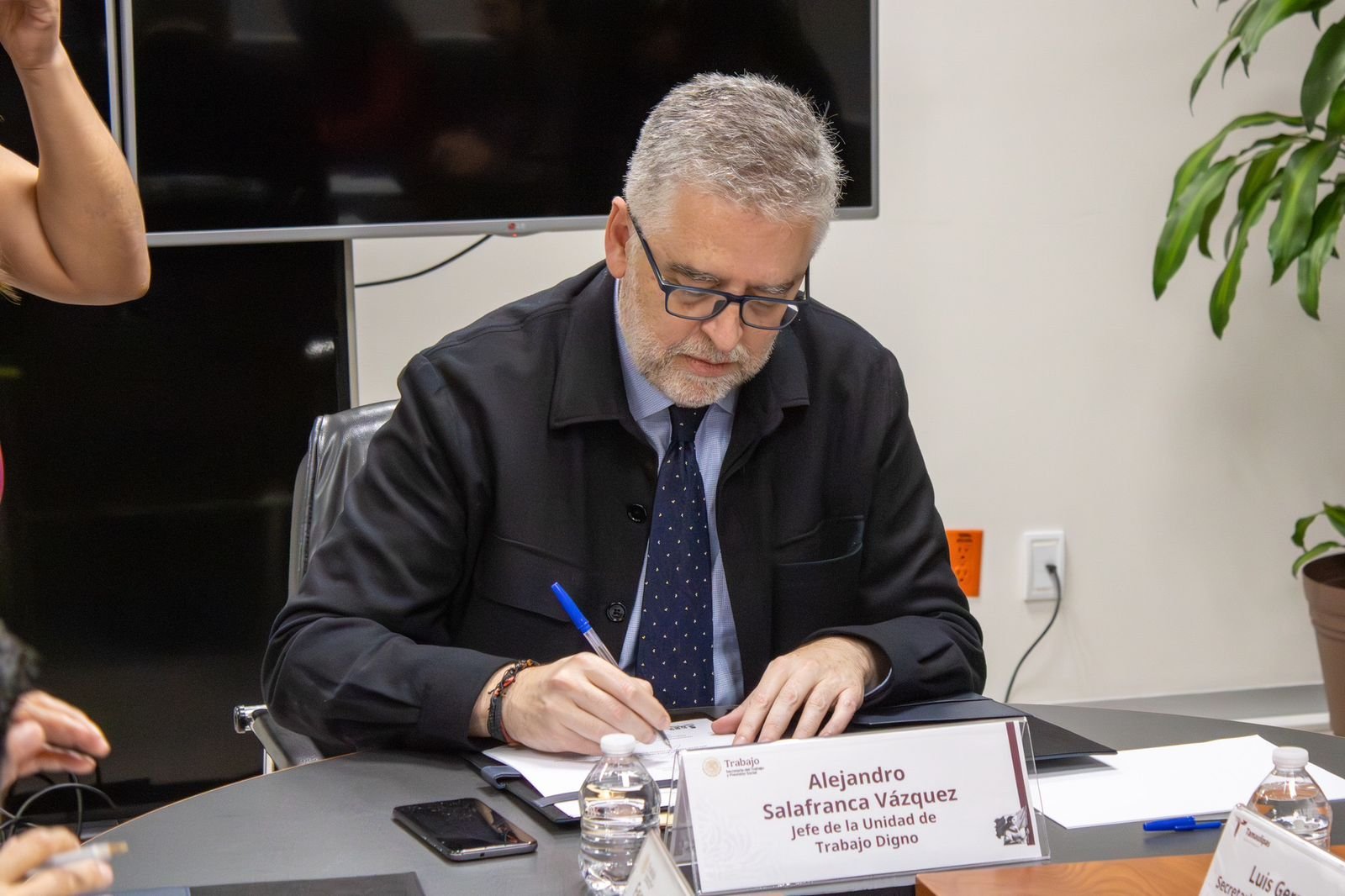 Durante el acto, el titular de la Unidad de Trabajo Digno, Alejandro Salafranca Vázquez, en representación de la STPS Federal, formalizó este acuerdo que busca proteger los derechos de las y los trabajadores y fomentar la formalidad del empleo en la entidad.