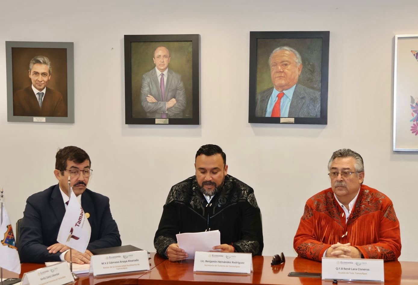 Durante el evento, el secretario de Turismo de Tamaulipas, Benjamín Hernández Rodríguez, estuvo acompañado de Ninfa Cantú Deándar, secretaria de Economía; René Lara Cisneros, presidente municipal de Tula y Damaso Anaya Alvarado, rector de la Universidad Autónoma de Tamaulipas (UAT).