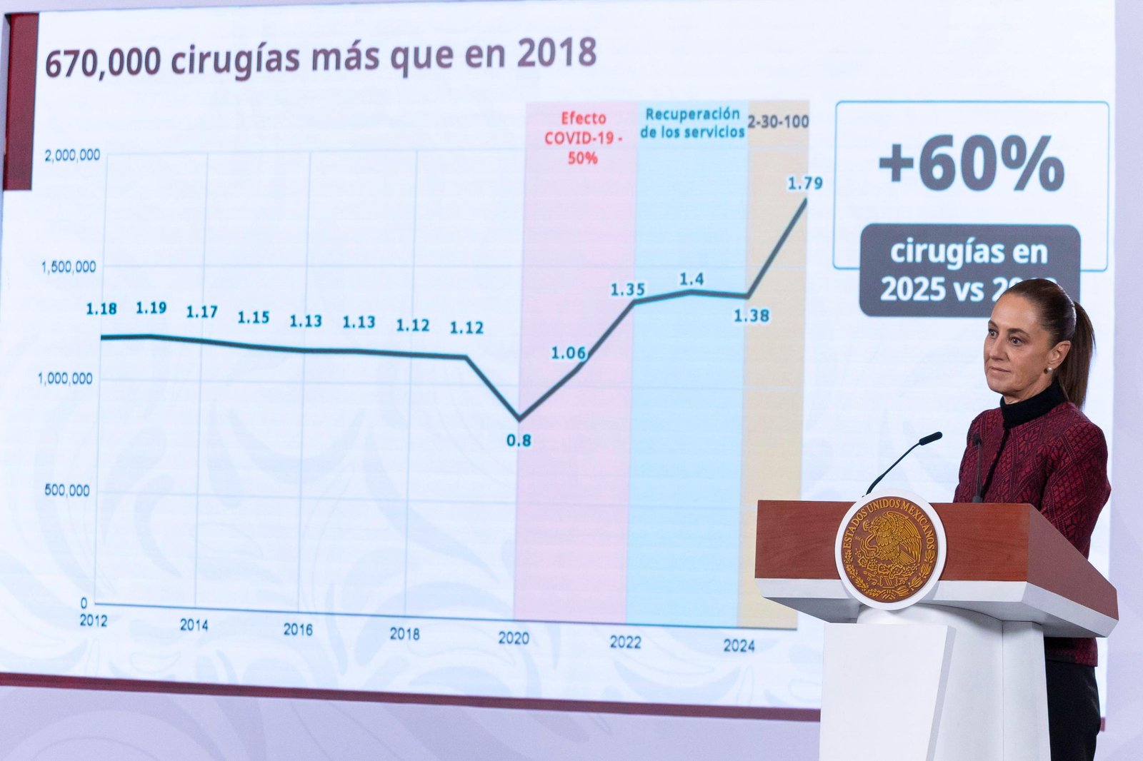 PRESIDENTA CLAUDIA SHEINBAUM DESTACA INCREMENTO DE CIRUGÍAS Y CONSULTAS DE ESPECIALIDAD EN IMSS, IMSS BIENESTAR E ISSSTE EN 2025; SE TRABAJA EN SERVICIOS UNIVERSALES DE SALUD