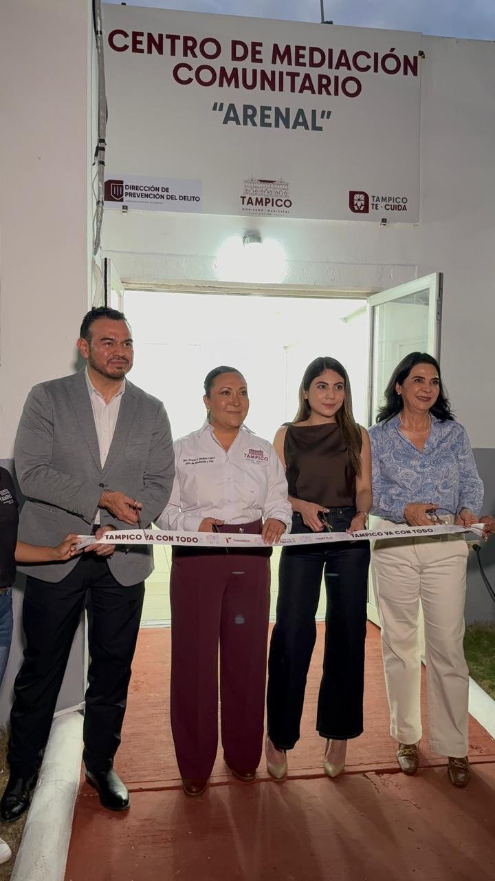 Octubre 22 de 2025, Tampico, Tamaulipas.– Por instrucciones del gobernador del Estado, Américo Villarreal Anaya y en el marco del fortalecimiento del proyecto Mediadores de Paz, se llevó a cabo la inauguración de dos nuevos Centros de Mediación Comunitarios, ubicados en el Fraccionamiento Infonavit y en el Centro TAMUL “Arenal”, en el municipio de Tampico.