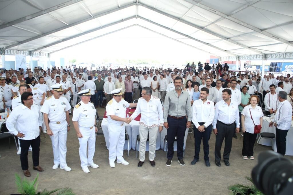 Acompañado por José Miguel Bejos, presidente del Consejo de Administración de Mota Engil México, y Javier García Bejos, director de Proyectos Especiales Latinoamérica de Mota Engil, Villarreal Anaya destacó el apoyo de la presidenta Claudia Sheinbaum y del secretario de Marina, Raymundo Pedro Morales Ángeles, así como de las empresas que confiaron en que este proyecto se podía hacer realidad.