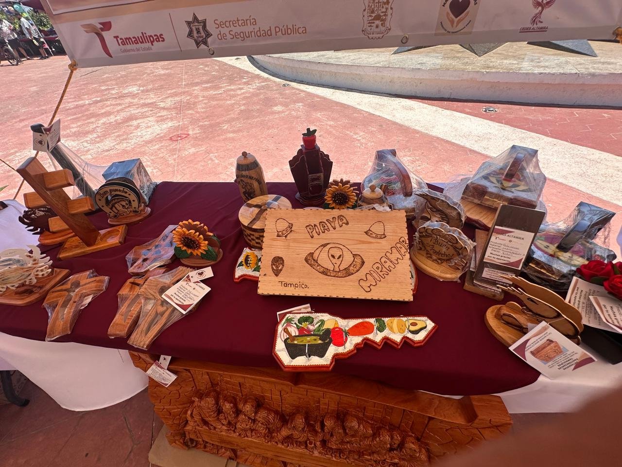 Ciudad Madero, Tamaulipas.- Como parte de las acciones de promoción del trabajo realizado por personas privadas de la libertad (PPLs) en el Centro de Ejecución de Sanciones (CEDES) del municipio de Altamira, se llevó a cabo la instalación de un módulo de venta de artesanías en la Playa Miramar.