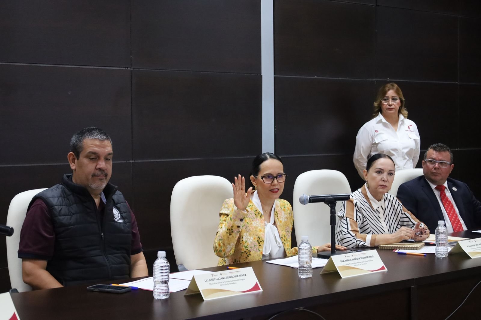 En la ceremonia estuvieron presentes las y los titulares de los Órganos Internos de Control del Poder Ejecutivo, Legislativo y Judicial, así como representantes de la Universidad Autónoma de Tamaulipas, el Tribunal Electoral del Estado, la Fiscalía General de Justicia, el Instituto Electoral de Tamaulipas y la Comisión de Derechos Humanos del Estado, quienes participaron en su carácter de Autoridades Garantes.