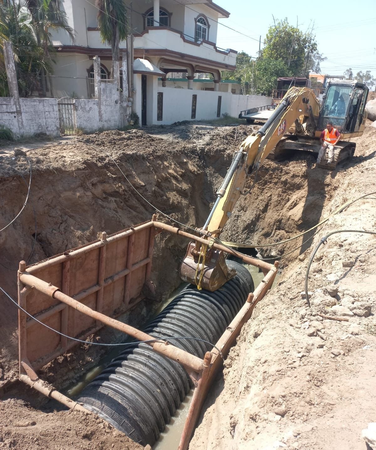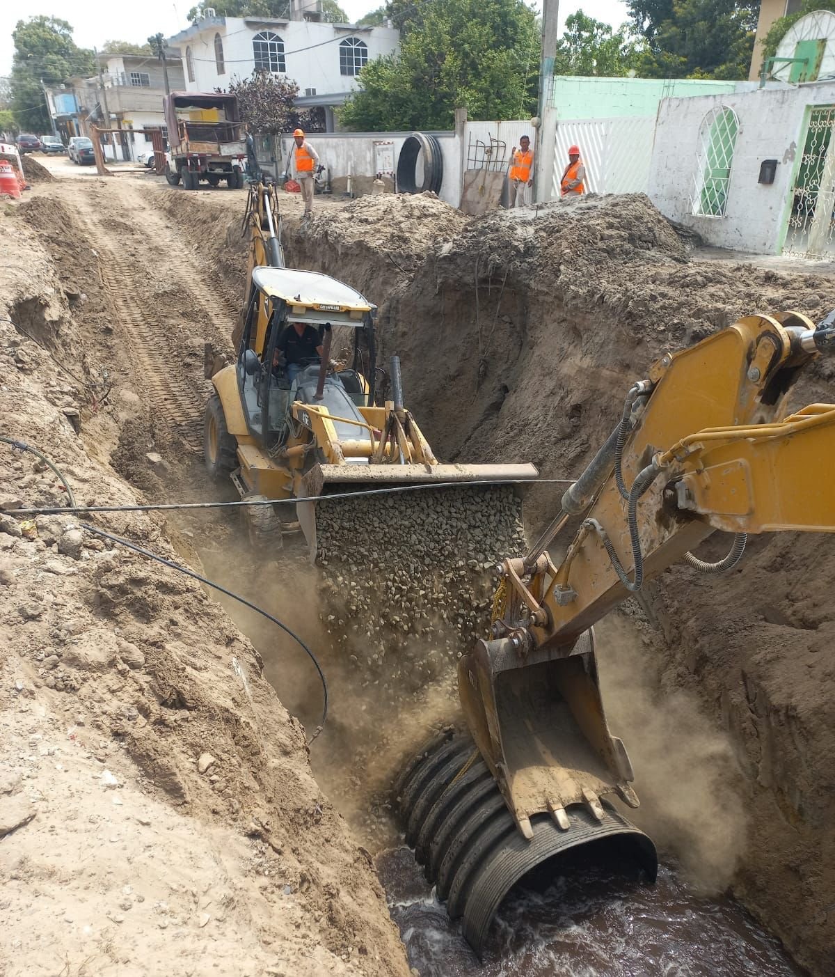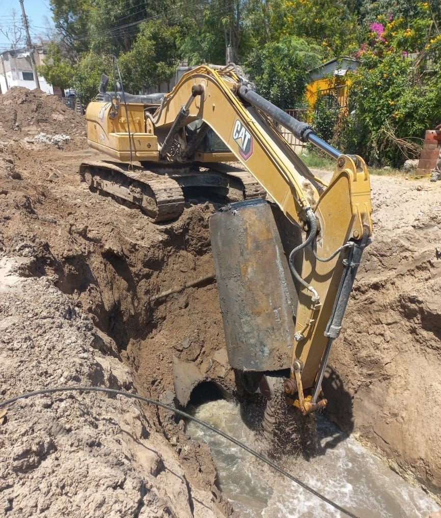 Los trabajos consisten en la reposición de un total de 200 metros lineales de un colector en la calle B entre Cuarta y Quinta de la citada colonia, e inicialmente se ejecutó una primer etapa en la calle Quinta entre B y C.