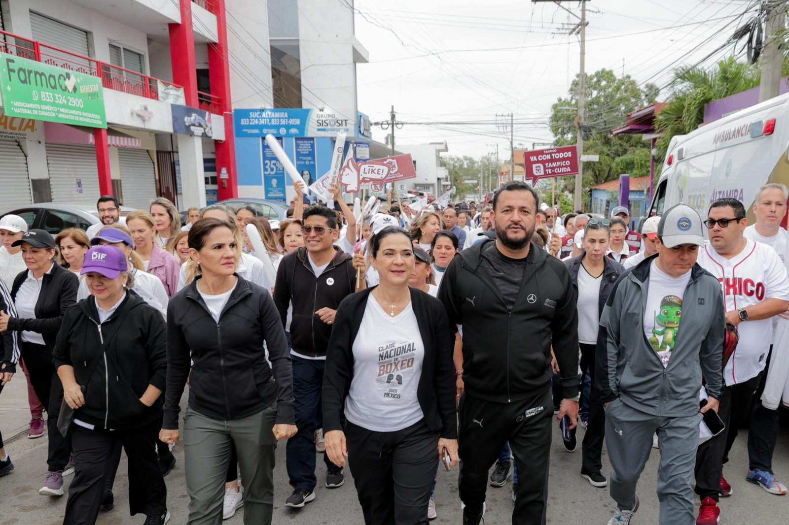 “Estamos muy contentos de presenciar, en sintonía con toda la República Mexicana, este gran evento de la Clase Nacional de Boxeo. Agradecemos a nuestra presidenta, Claudia Sheinbaum, por impulsar la importancia del deporte. El deporte nos une; como ven, Tampico, Madero y Altamira están juntos en esta plaza haciendo ejercicio. Ojalá esta acción se repita muchas veces más, pues aleja a la ciudadanía, especialmente a los jóvenes, de las adicciones”, expresó.