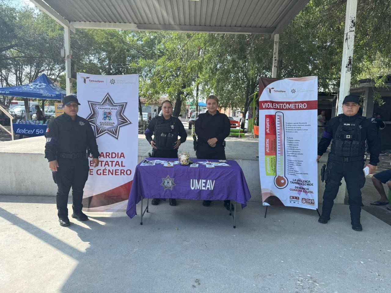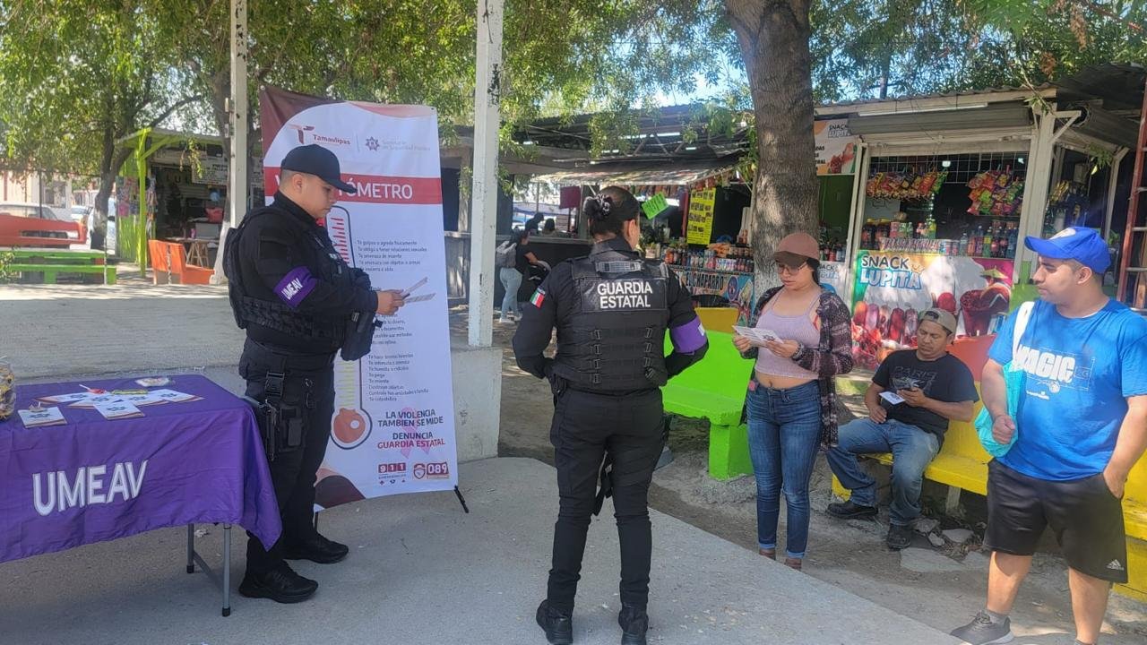 Ciudad Victoria, Tamaulipas.- Dentro de las acciones preventivas realizadas por el personal de la Guardia Estatal de Género en municipios fronterizos, elementos de Reynosa y Nuevo Laredo instalaron módulos informativos en espacios públicos.
